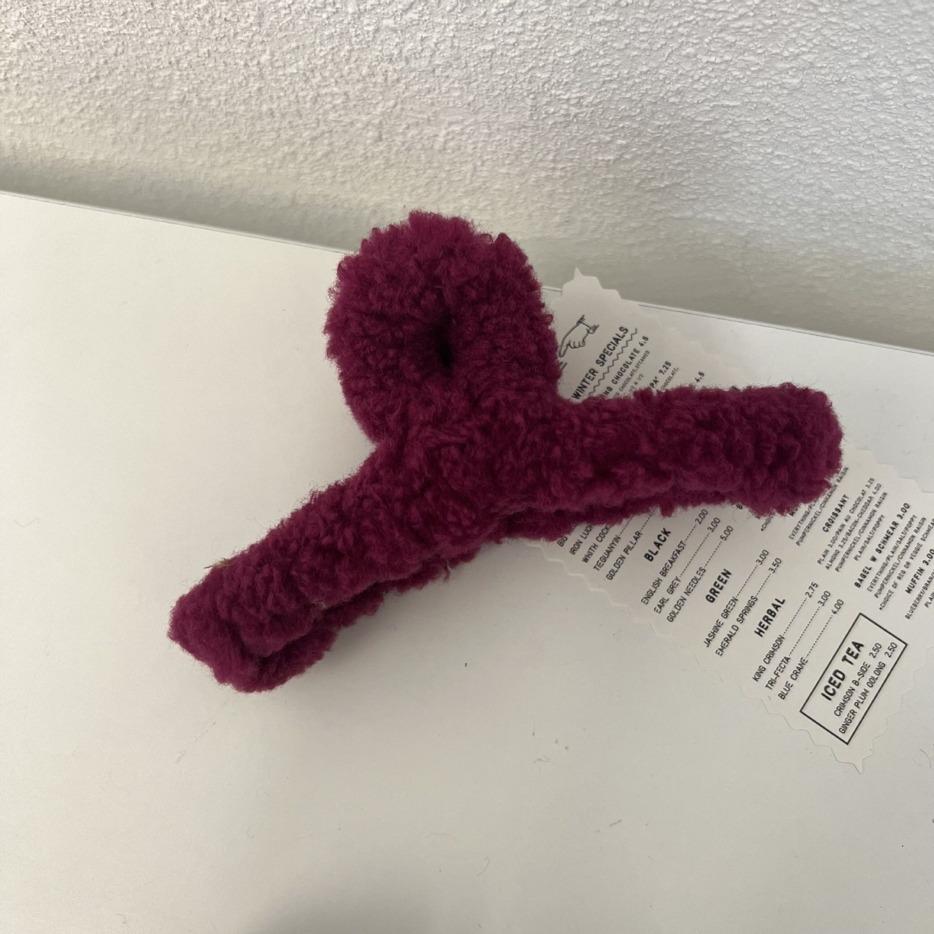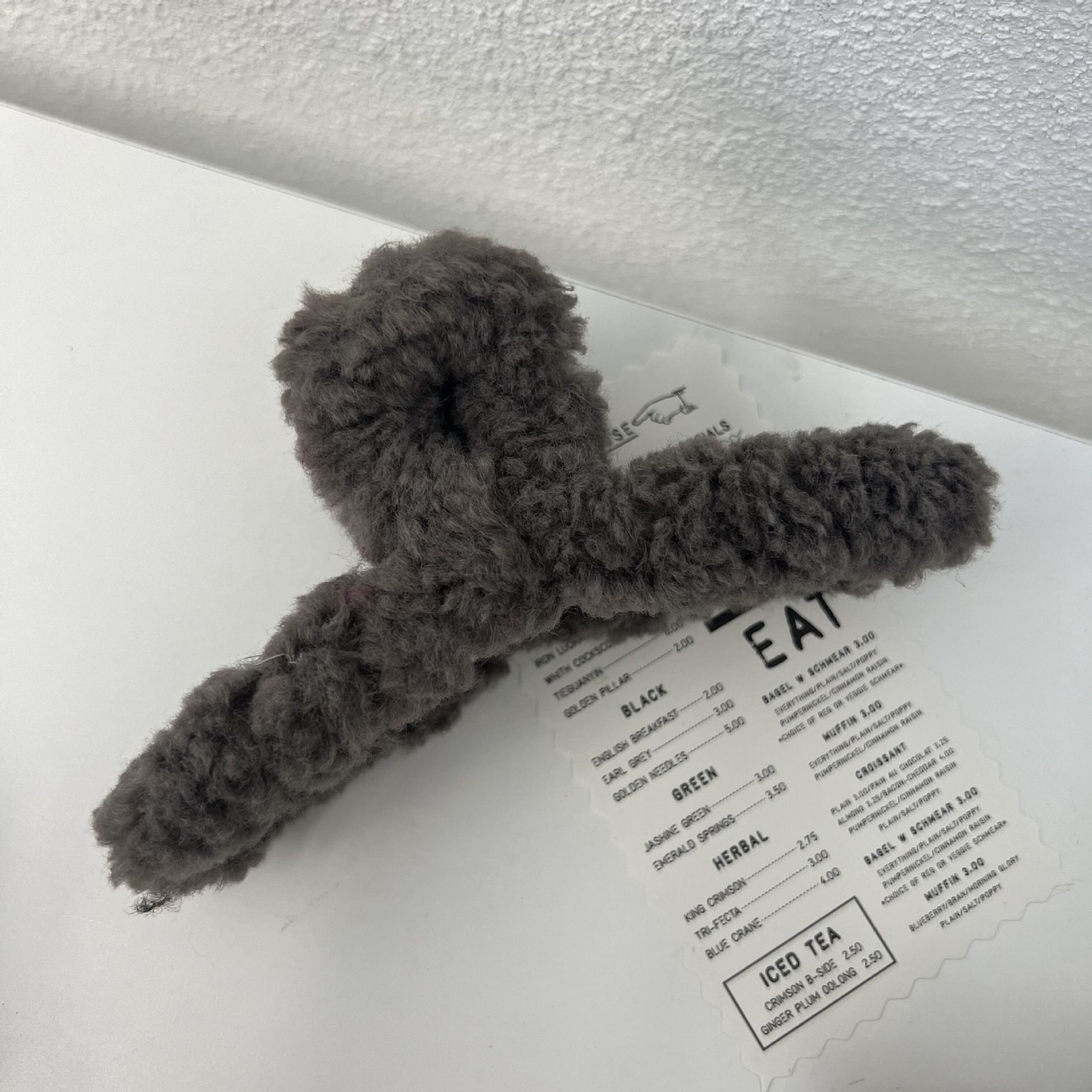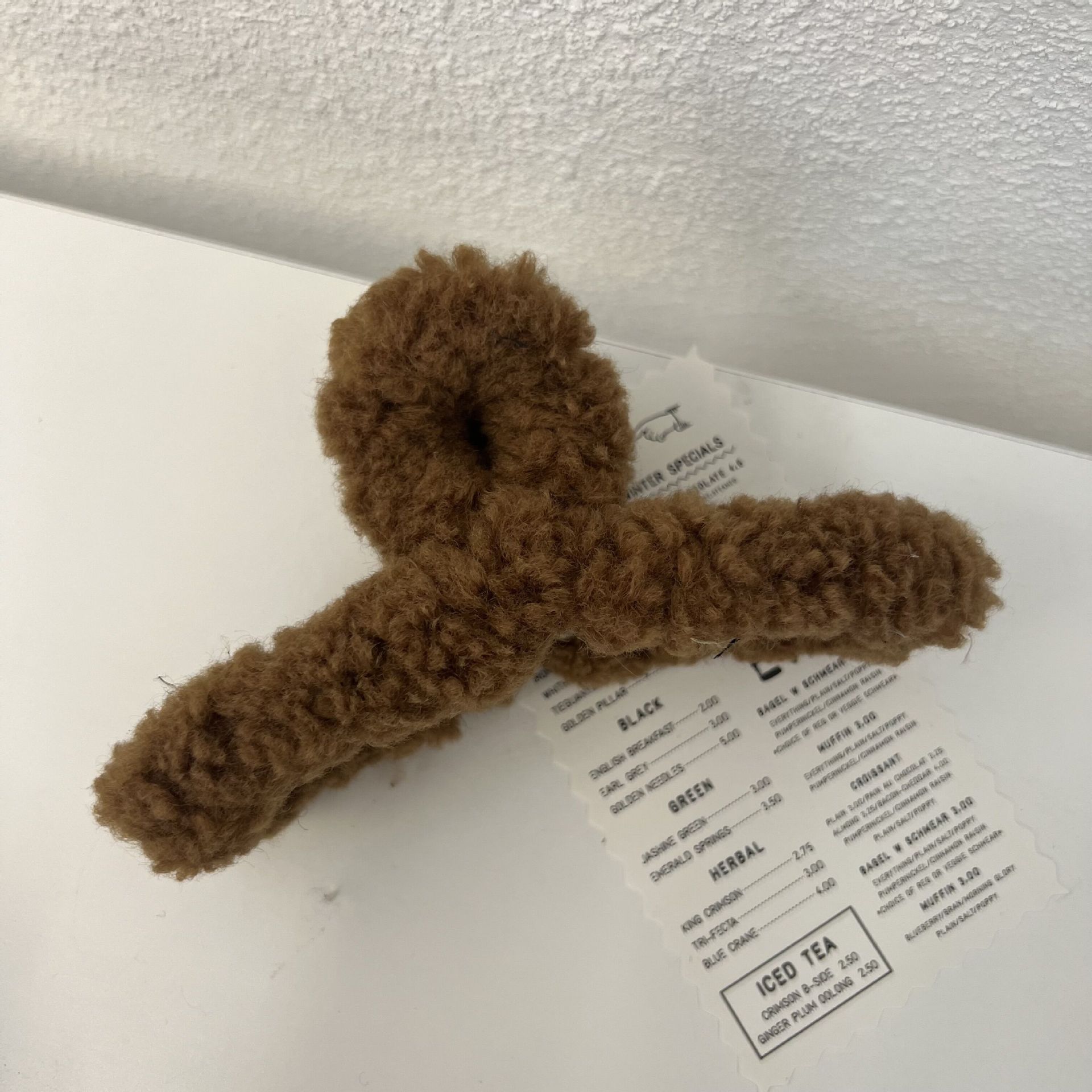韩国东大门秋冬款羊羔毛鲨鱼夹加大号毛毛盘发抓夹甜美风毛绒发夹