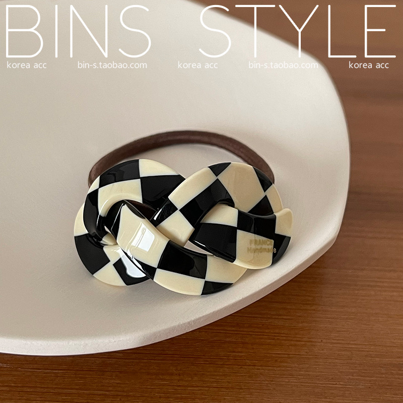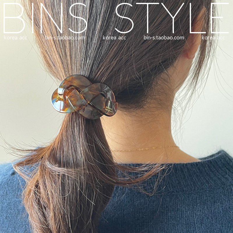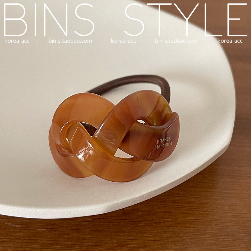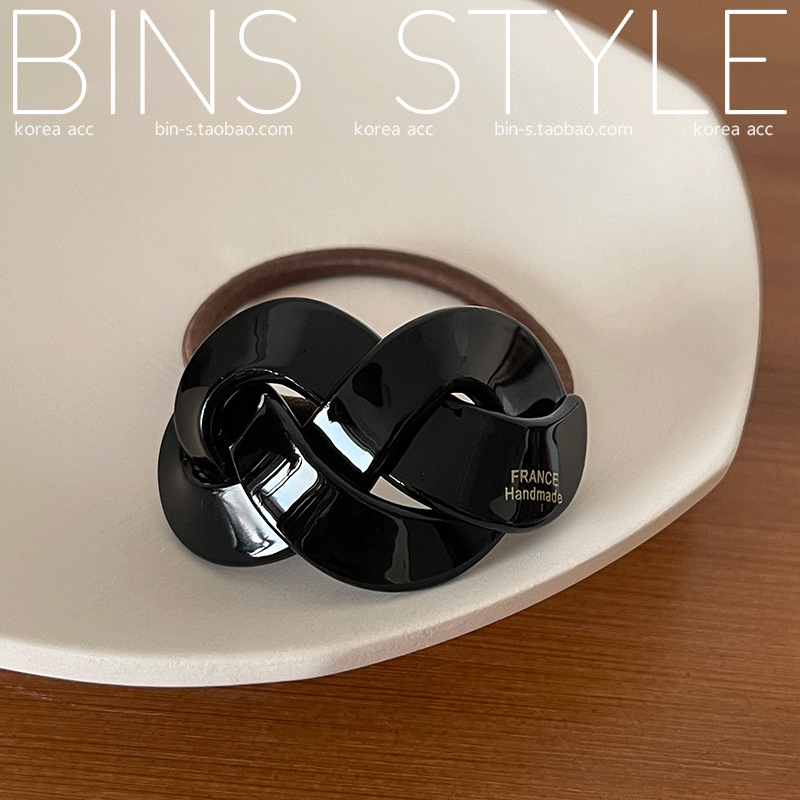 韩国新款chic气质小众设计感弧形交叉麻花编织马尾发圈 扎发头绳