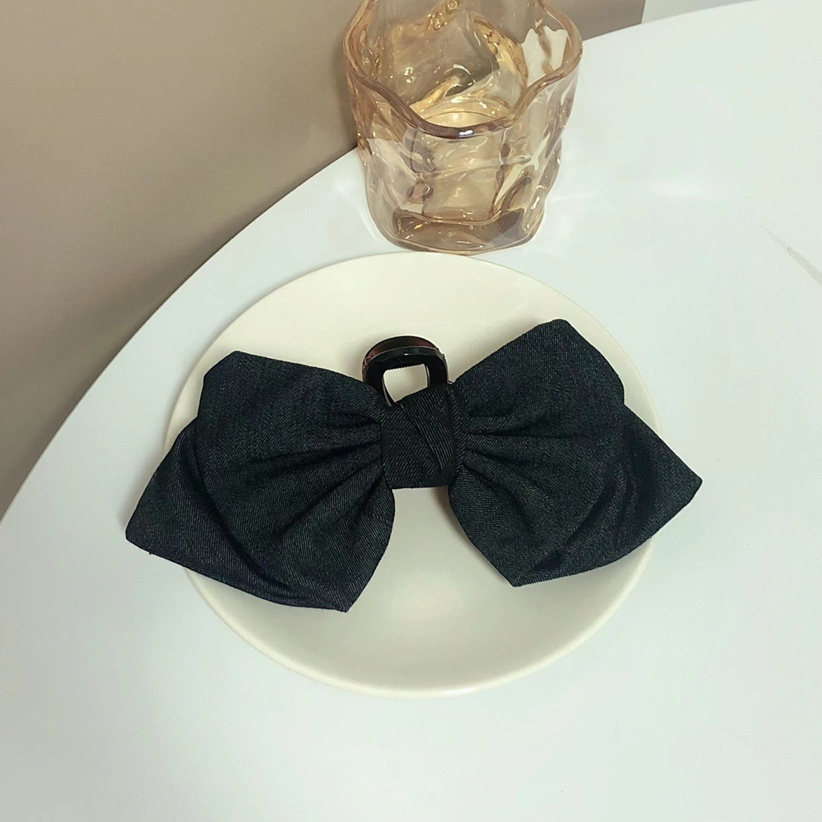 日系牛仔双层蝴蝶结琥珀色抓夹大号清新鲨鱼夹头发夹子新款头饰品