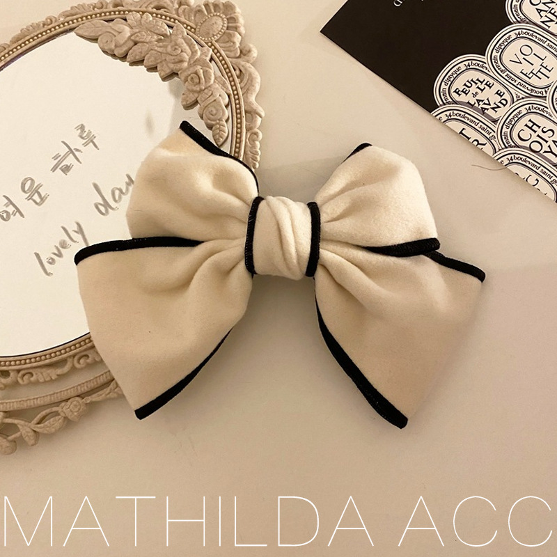 韩国东大门秋冬小香风黑白蝴蝶结发夹仿羊绒顶夹发卡网红发饰品女