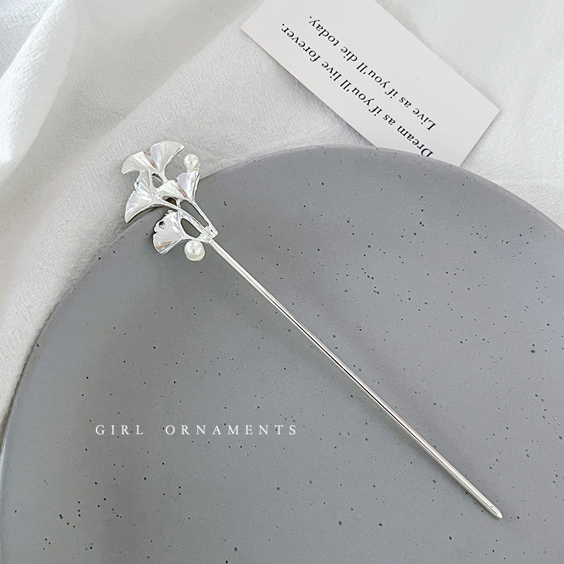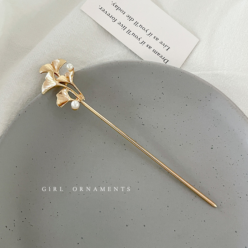 银杏叶珍珠发簪女丸子头盘发神器簪子简约现代高级感发钗旗袍配饰