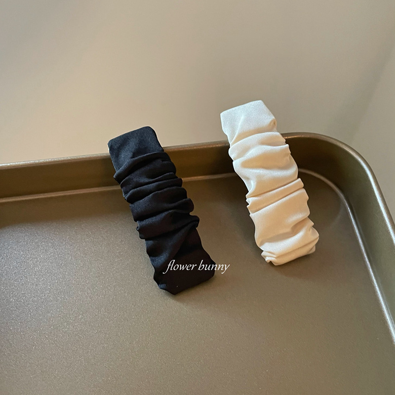 自制简约高级感绸缎褶皱刘海发夹甜美布艺文艺复古黑色法式bb边夹