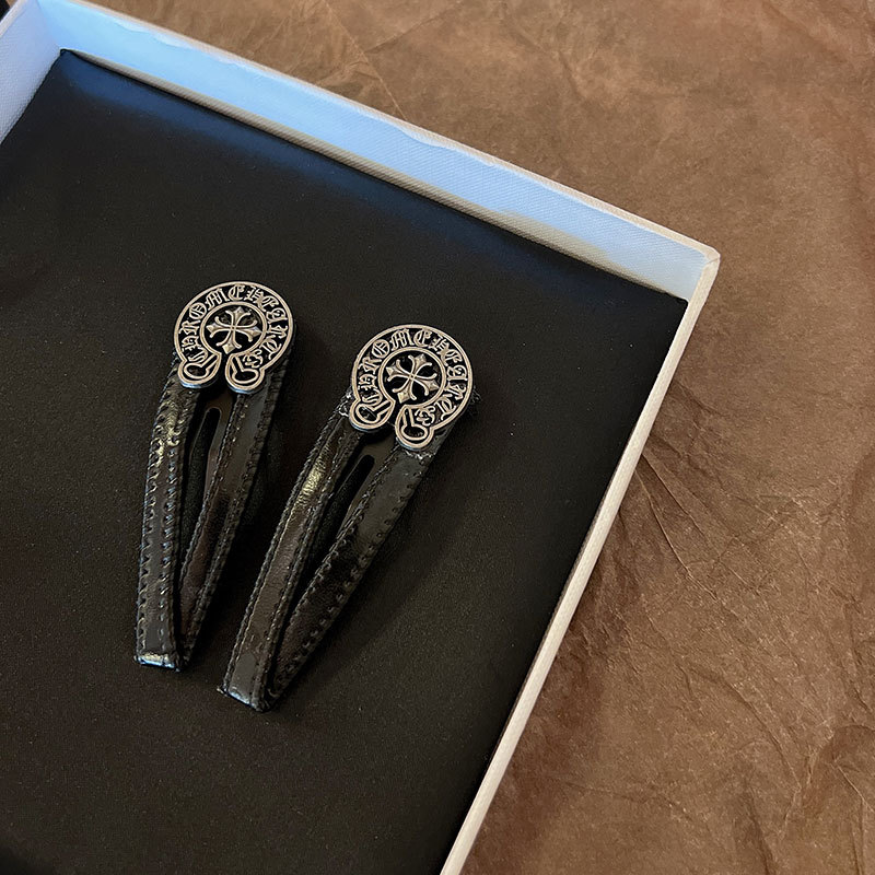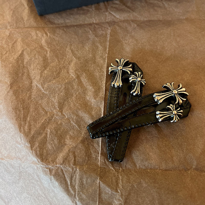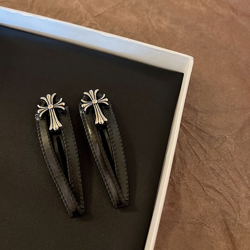 新款手工缝皮BB夹边夹十字架朋克梵文刘海夹侧边夹发饰