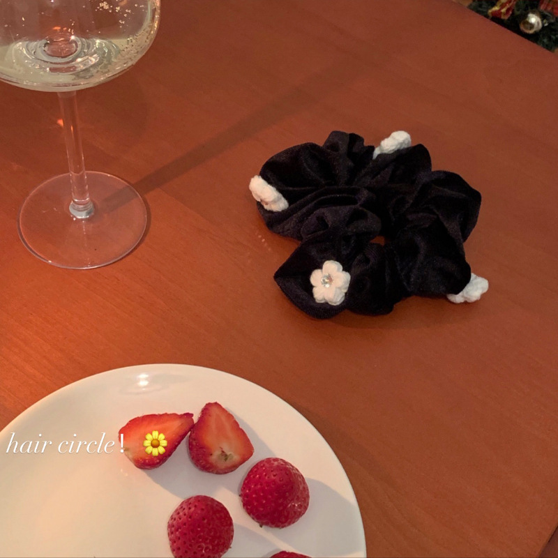 高级感山茶花大肠发圈头绳皮筋女扎头发绳头饰日常外出小香风发饰