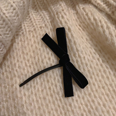 韩国黑色丝绒蝴蝶结发夹发圈秋冬款复古侧边夹刘海夹简约皮筋发绳