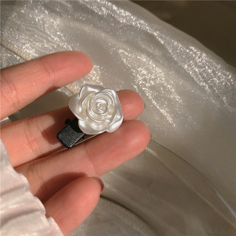 超仙白色玫瑰花发夹~盘头发山茶花头饰刘海夹日韩初春新款发饰女