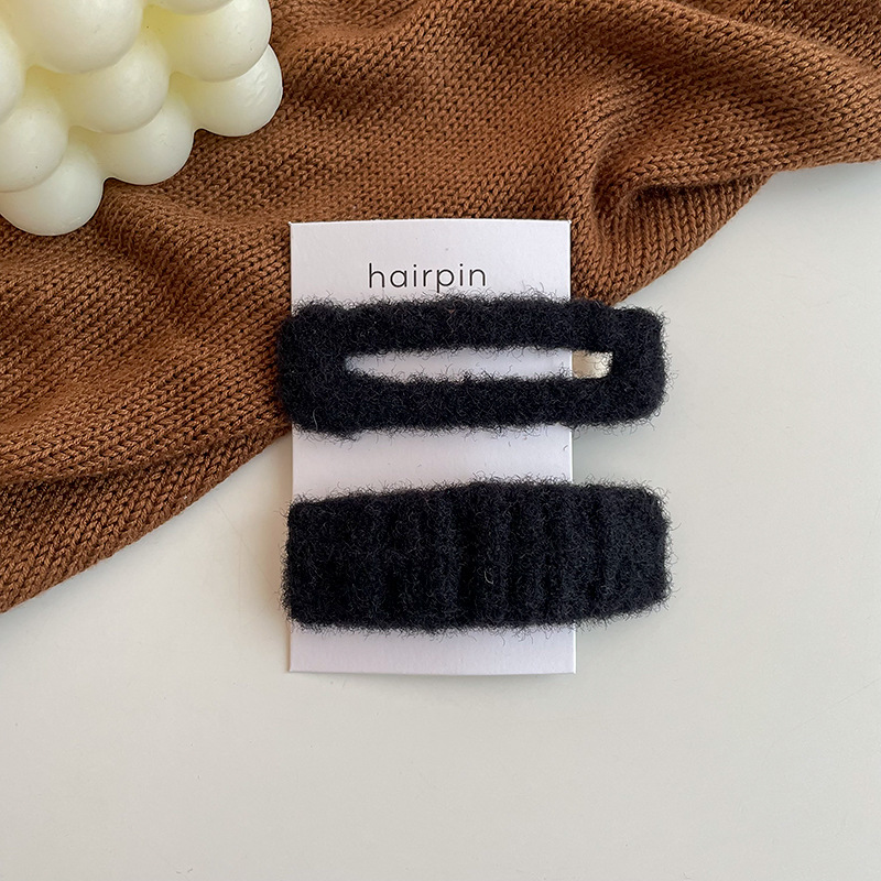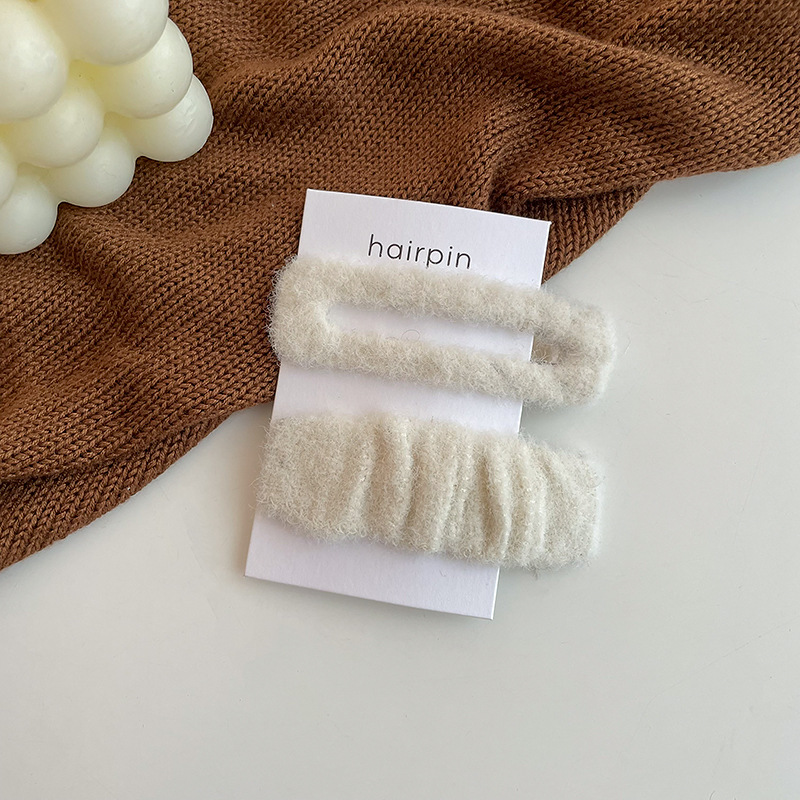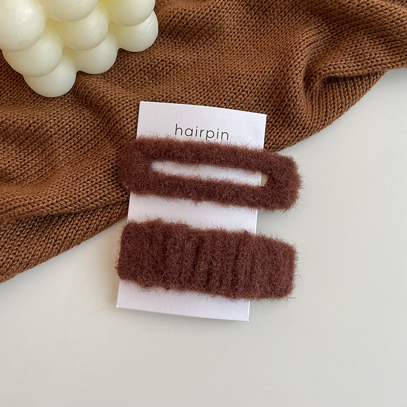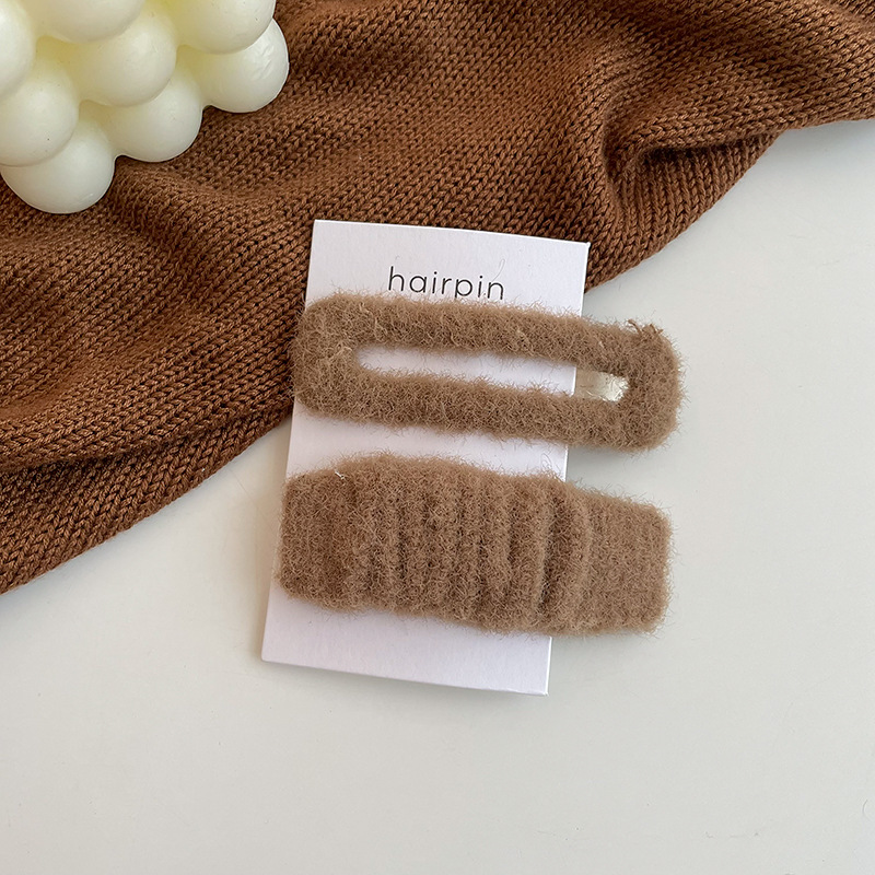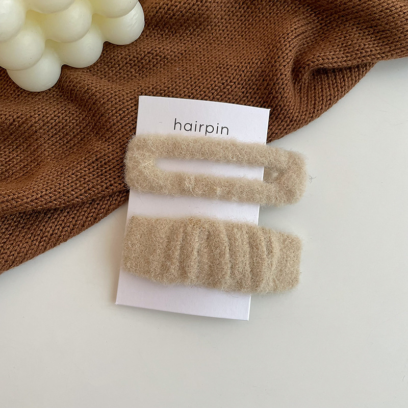 奶咖色两件套毛绒发夹刘海夹少女可爱百搭侧边简约一字夹边夹发饰