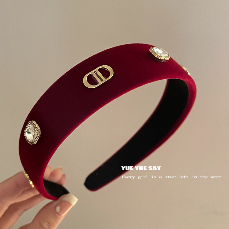 魔女宅急便 复古丝绒水钻宽边发箍金属字母压发头箍 秋冬气质发饰