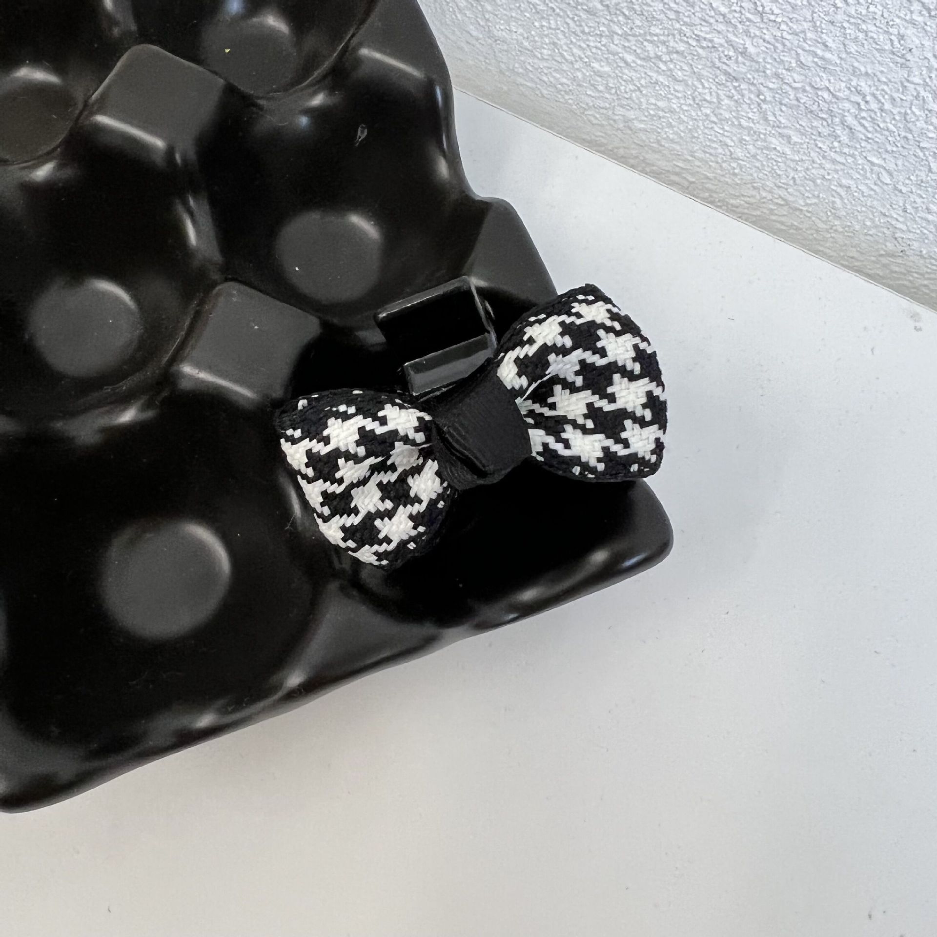 精致千鸟格蝴蝶结抓夹小号复古刘海夹子头饰黑白格气质发夹女侧边