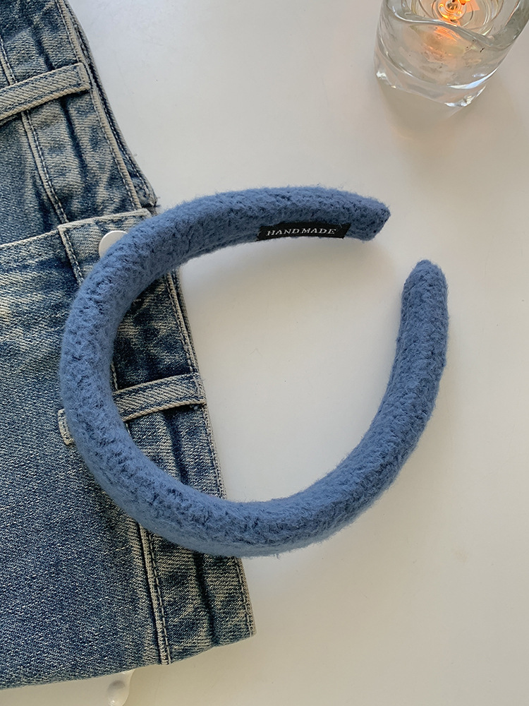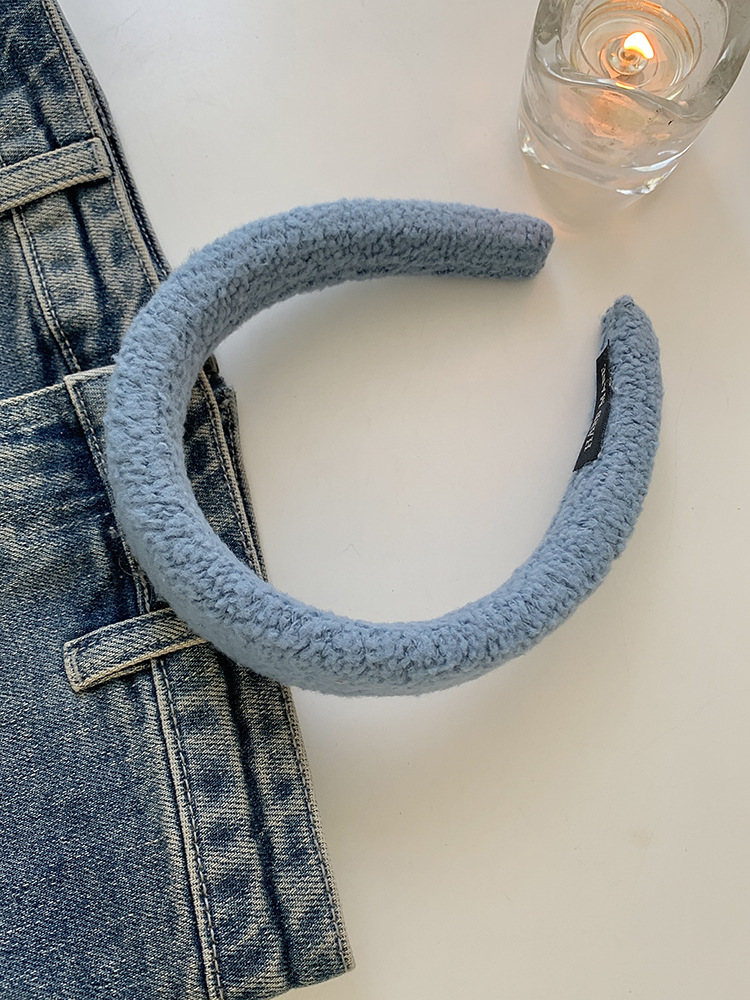 气质蓝色羊羔毛发箍宽边压发高颅顶头箍女外出百搭