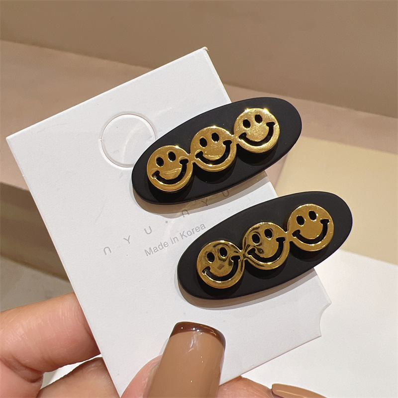 磨砂黑色小巧鸭嘴夹金属笑脸小发夹mini韩版时尚轻便个性刘海夹女