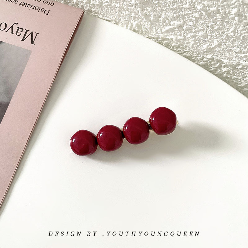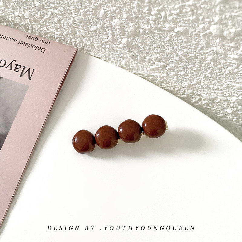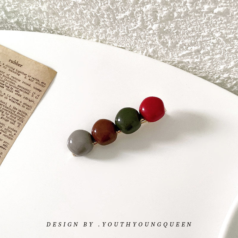 小众复古彩色小球发夹后脑勺一字夹侧边夹鸭嘴夹子头饰批发