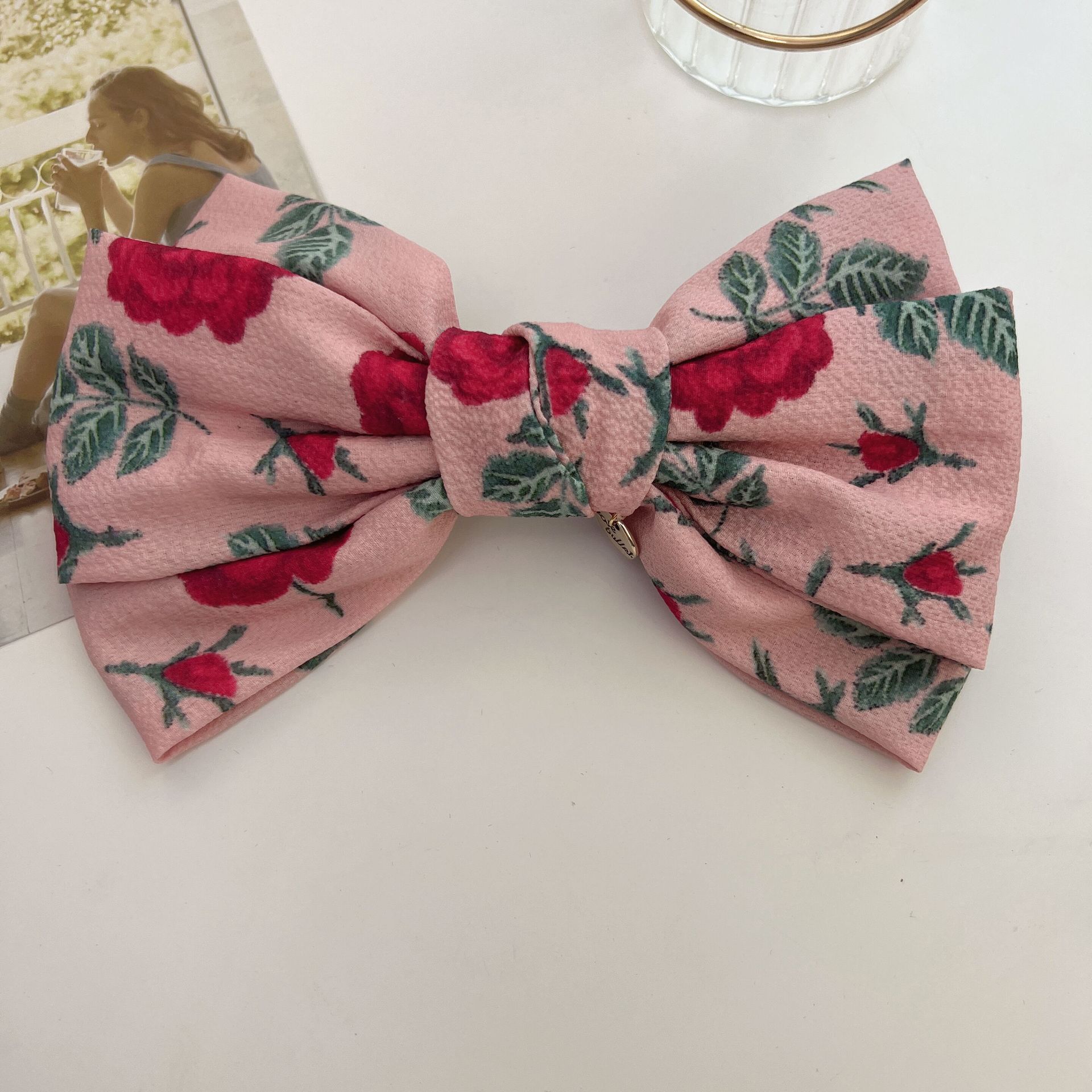 法式复古玫瑰花蝴蝶结发夹夏季后脑勺盘发弹簧夹子头饰