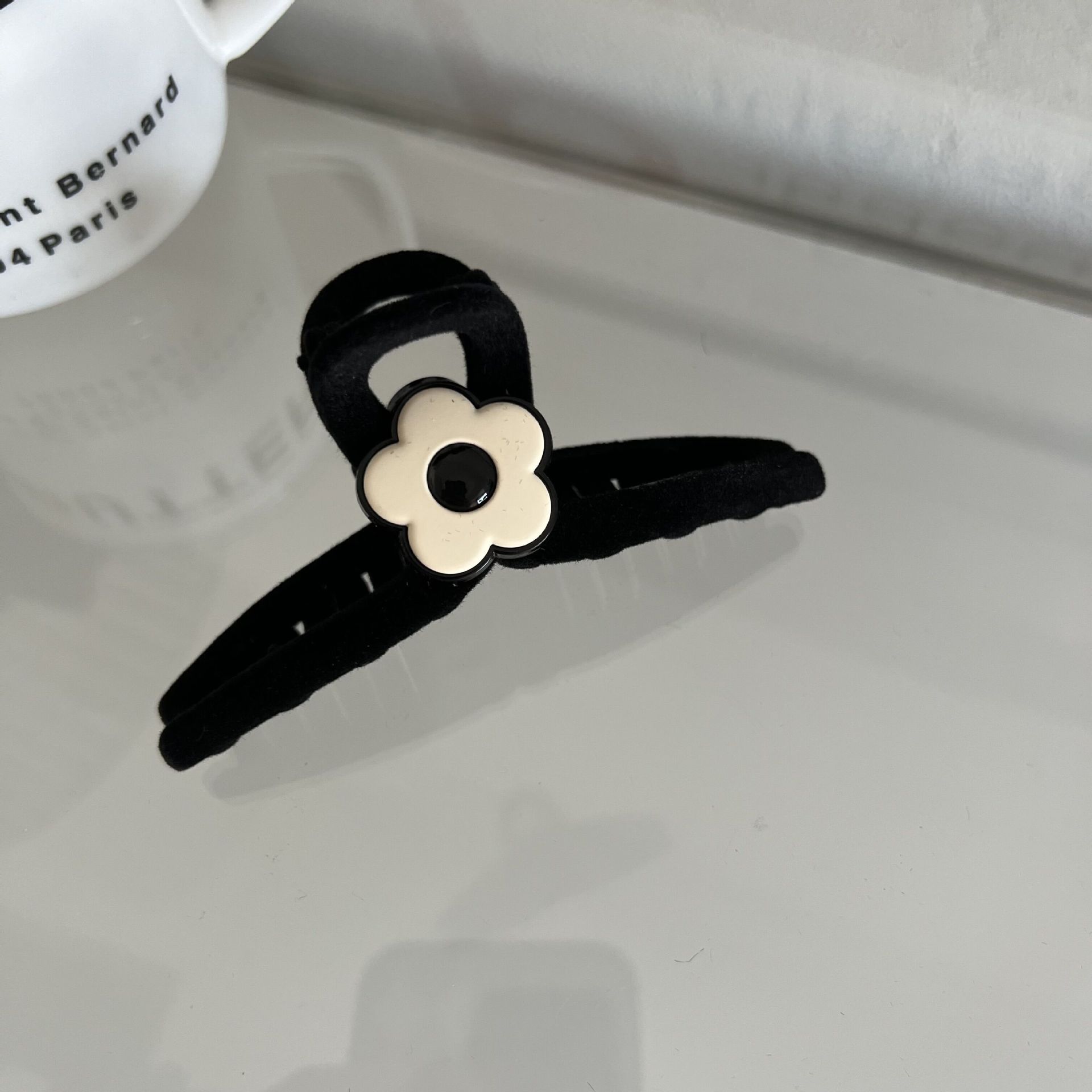 法式气质丝绒花朵发夹女秋冬抓夹边夹高级感鲨鱼夹边夹发圈发绳
