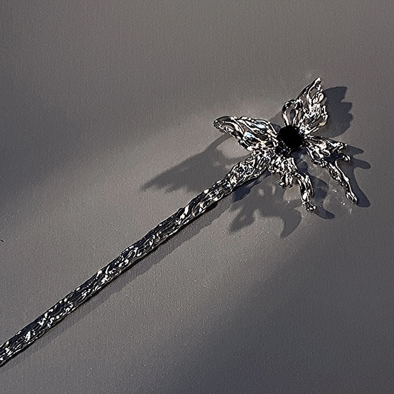 新中式液态金属蝴蝶发簪子高级感设计小众古风盘发饰女夏网红头饰