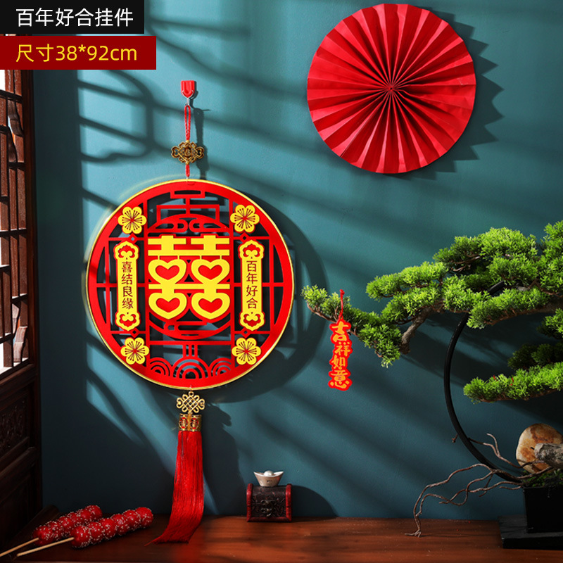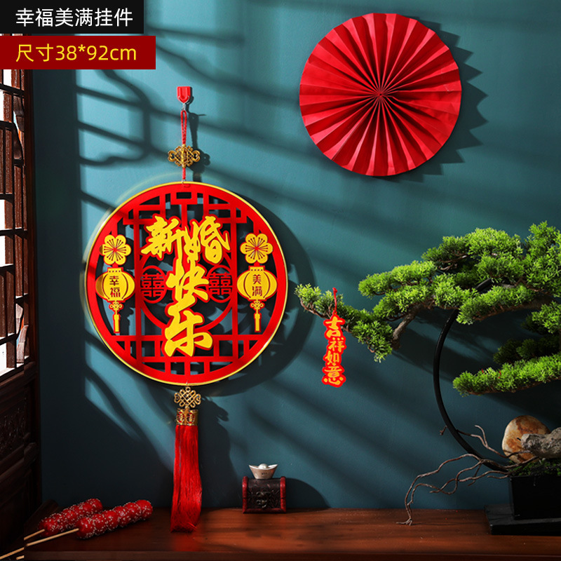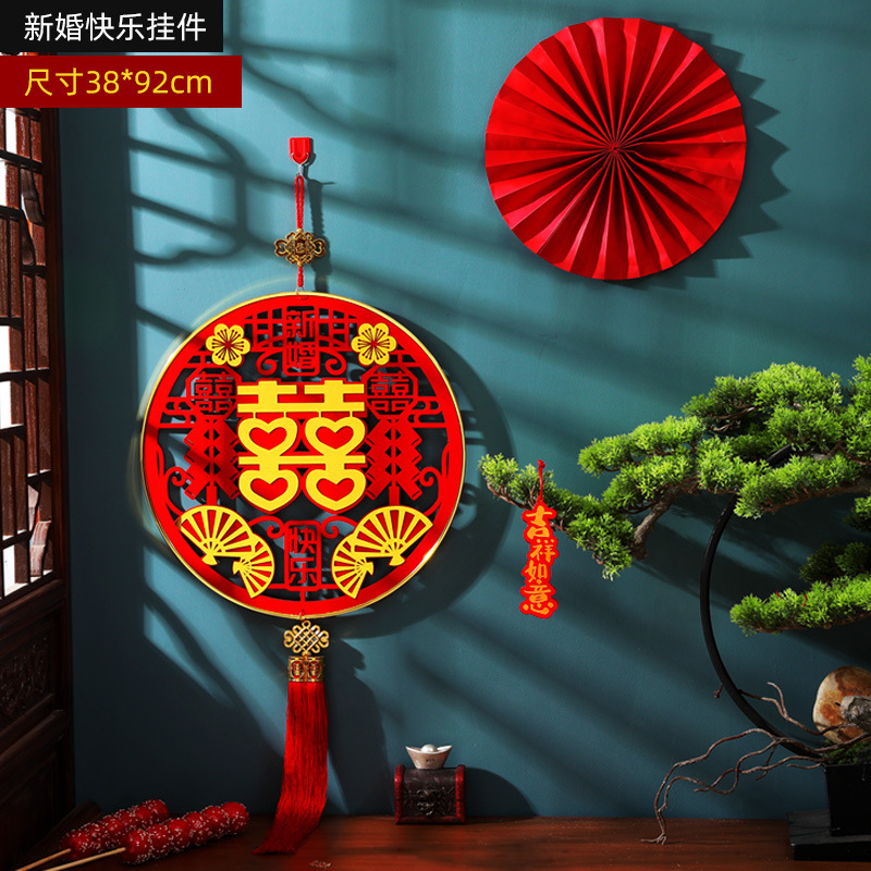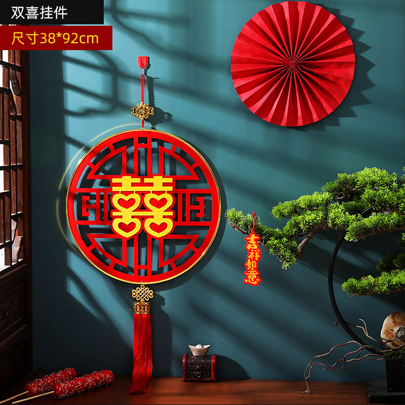 新款结婚挂件婚礼婚房卧室创意喜字挂饰客厅立体喜字吊饰植绒
