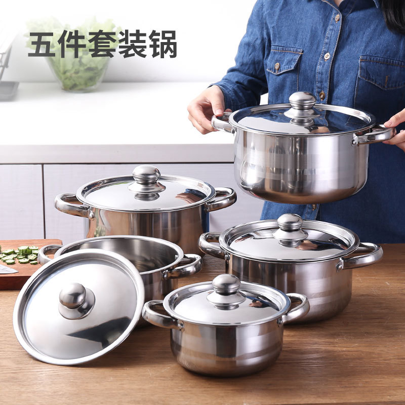 套锅不锈钢锅具套装18-26cm燃气灶电磁炉适用双耳汤锅五件套..