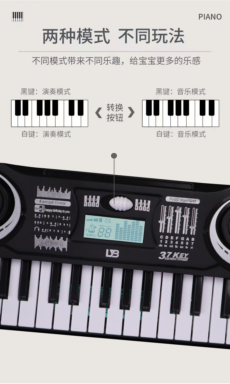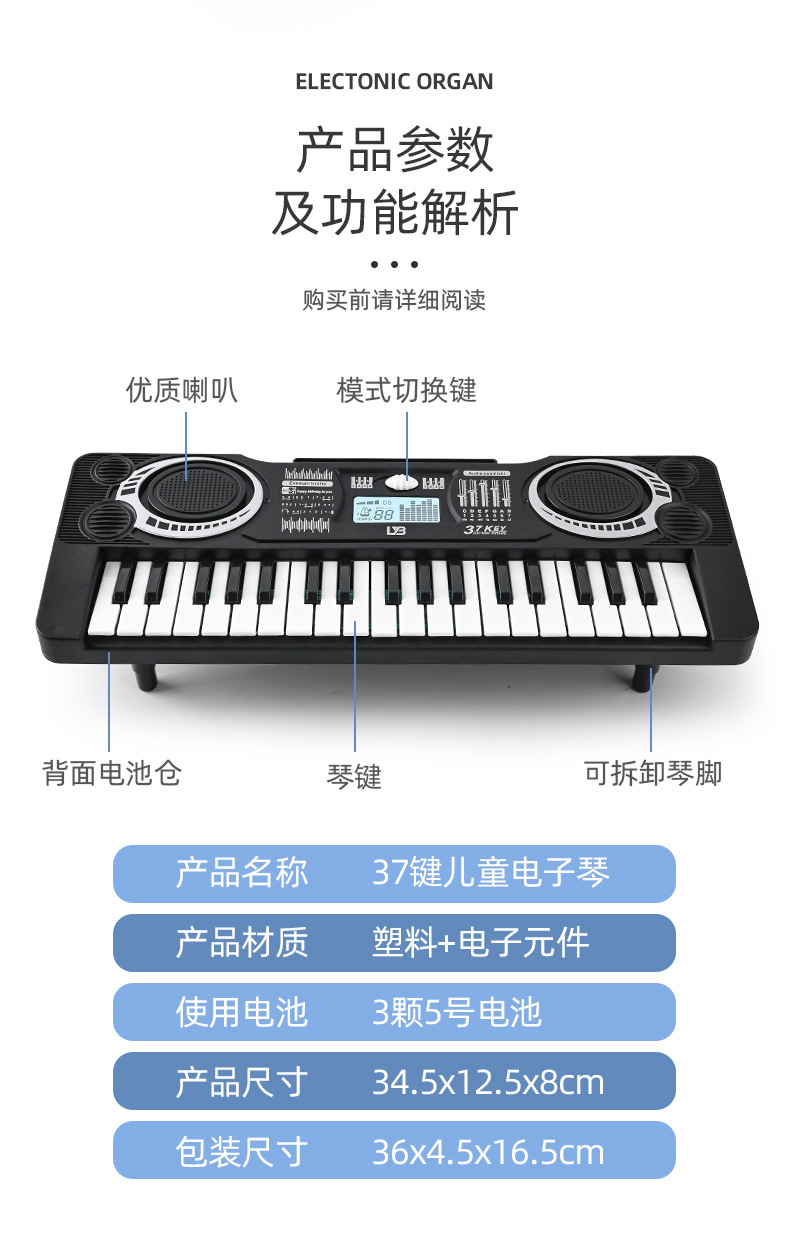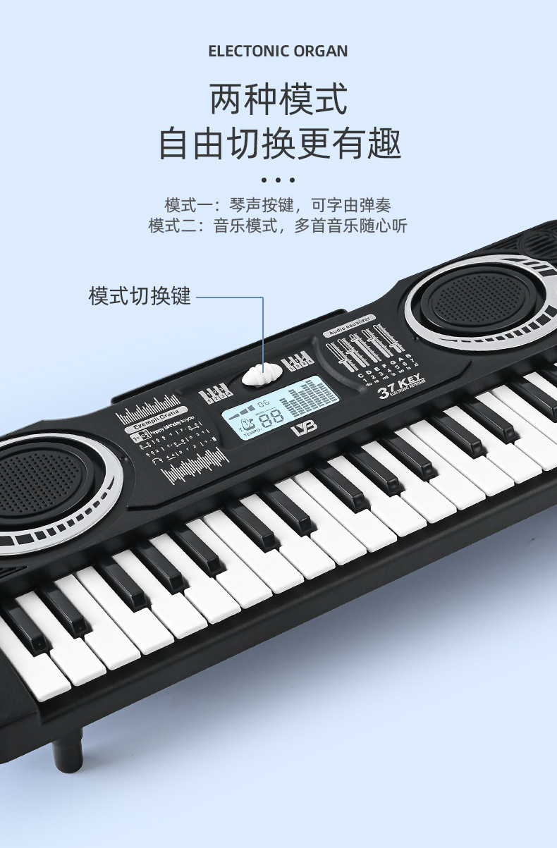 益智早教小宝宝37键多功能电子琴初学者外贸乐器音乐玩具地摊跨境