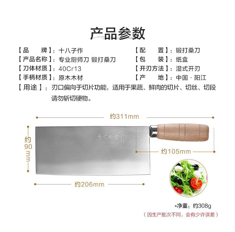 阳江十八子作手工锻打桑刀SD菜刀专业厨师切菜切片刀商用酒店刀具