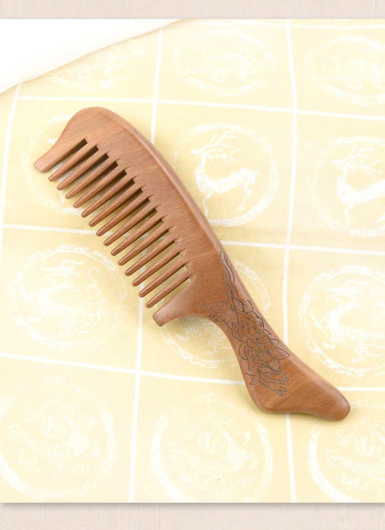 天然老桃木梳子整木雕花桃木梳子把柄护发美发梳子家用梳子