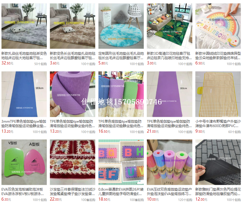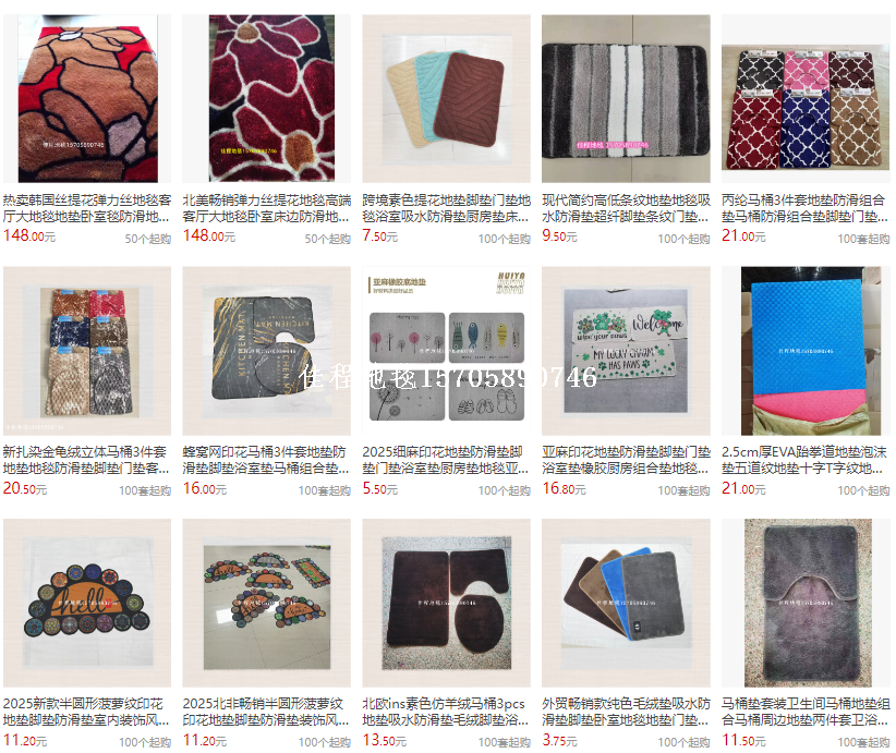 | 跨境出口外贸尾货库存地毯地垫地摊货源现货供应工厂批发代发厕所门厅脚垫 | 义乌贝迪地毯 |