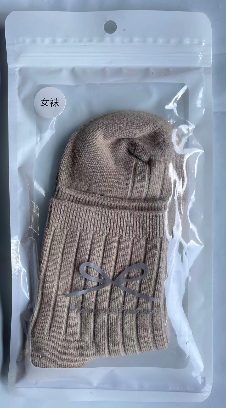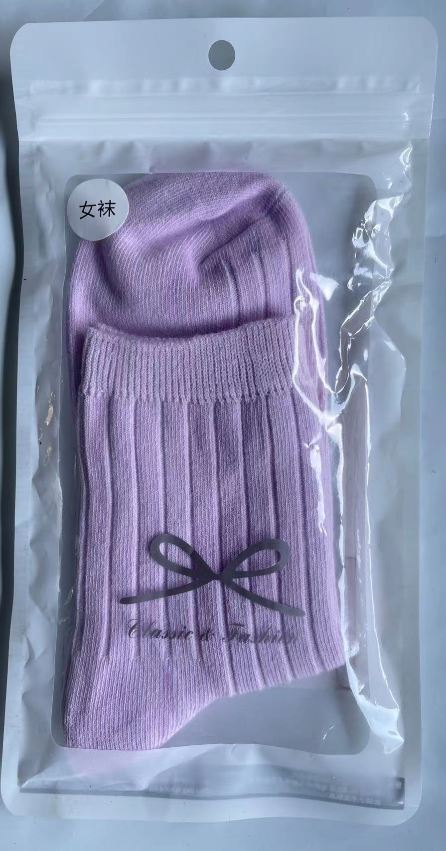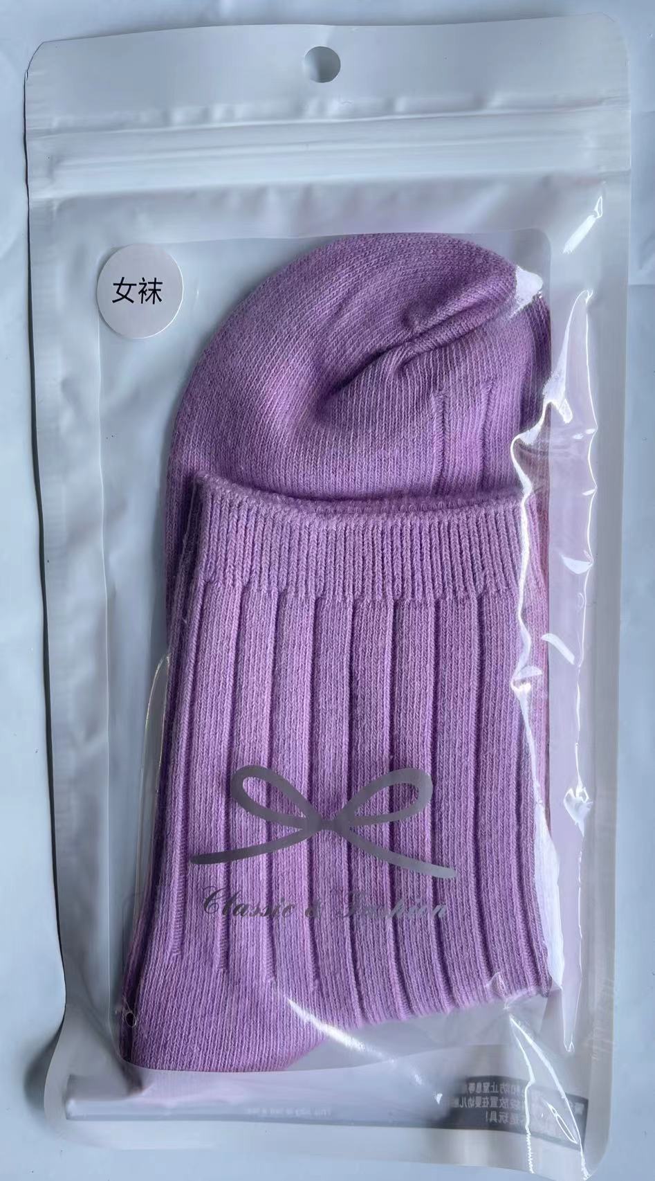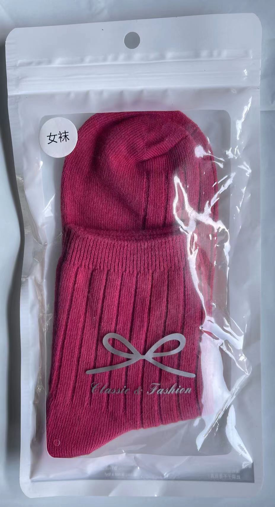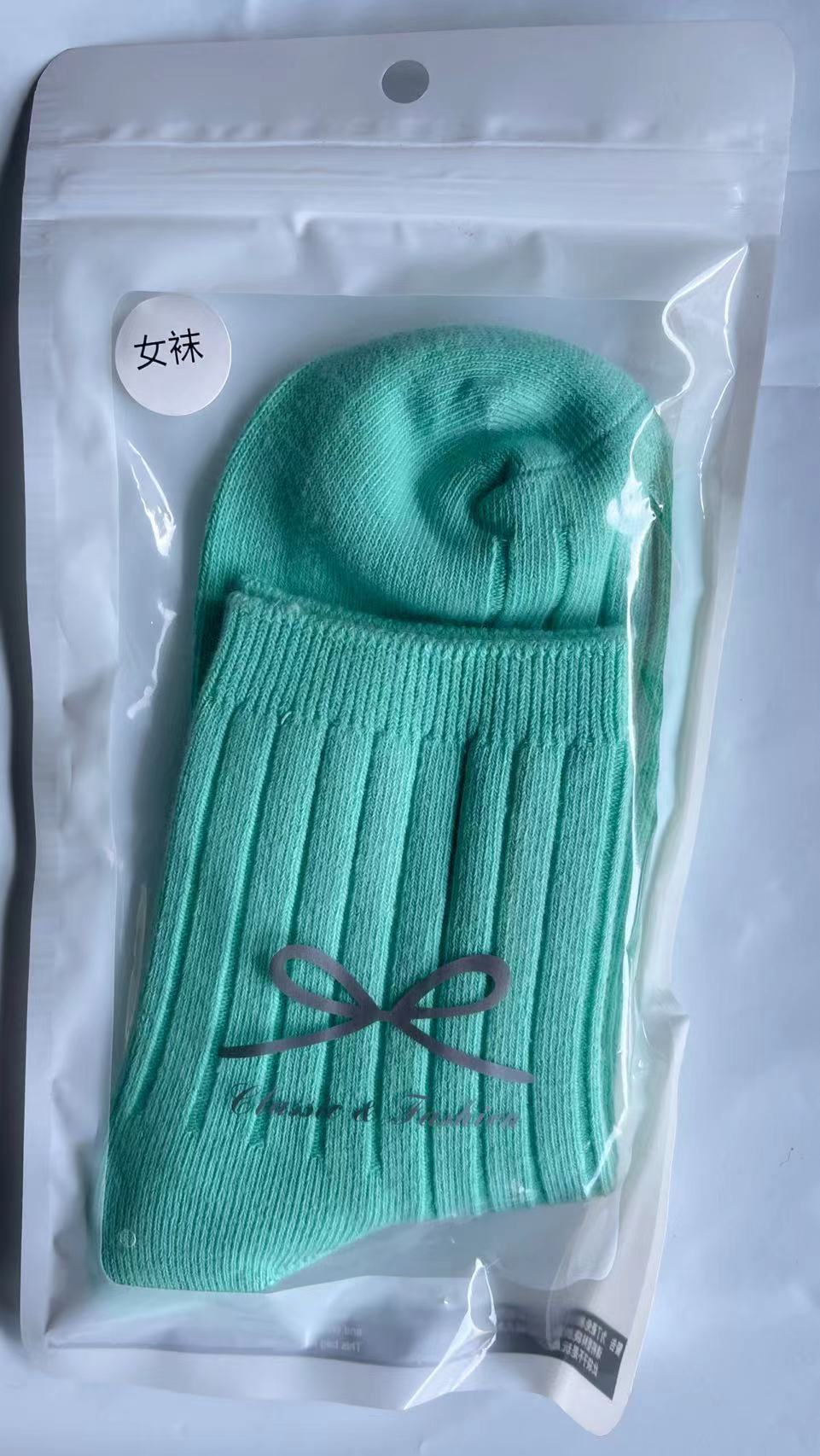 袜子女秋冬款纯色棉袜混纺双针条纹中筒棉袜冬季百搭中长筒厚袜子