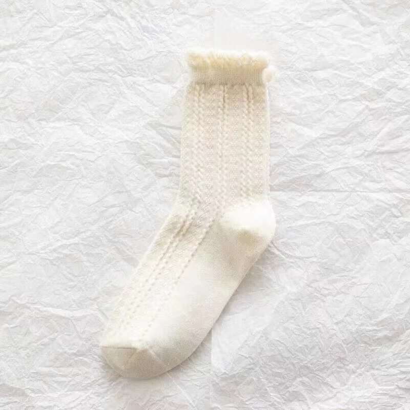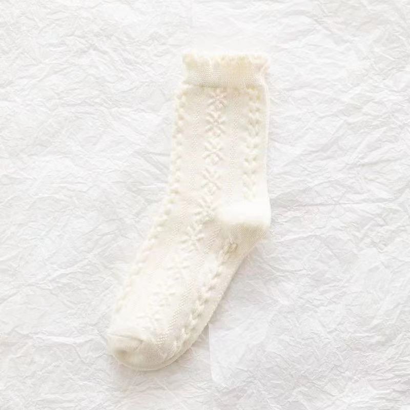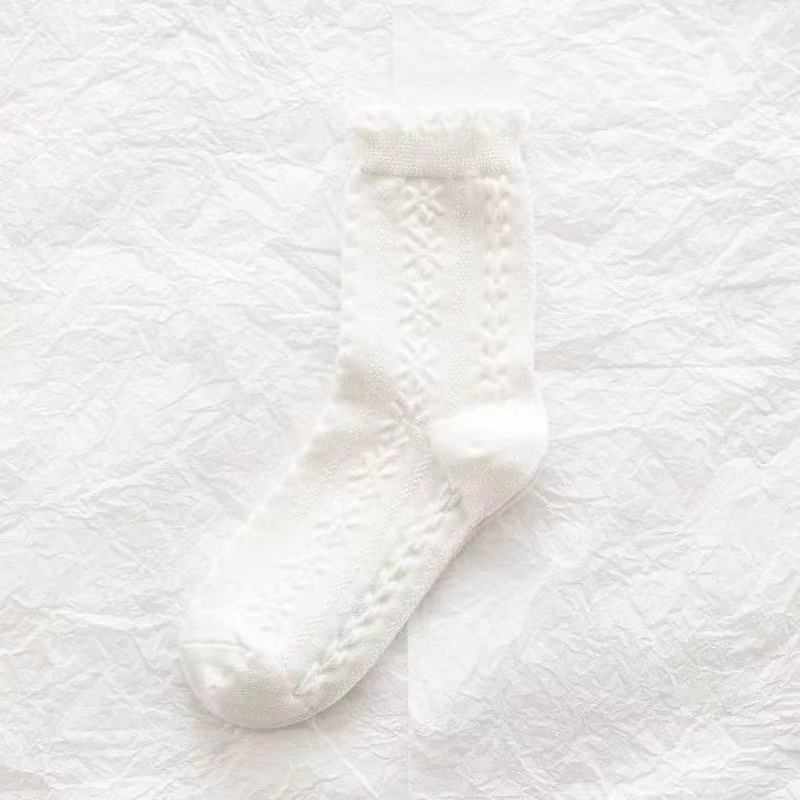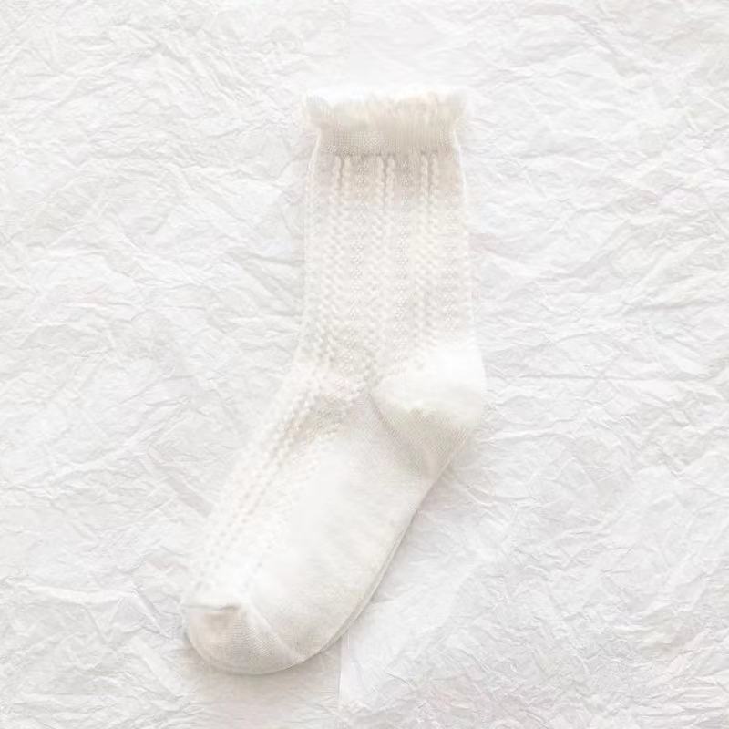 袜子女蕾丝花边日系软妹Lolita白色女泡泡口中筒袜 春夏薄款jk袜