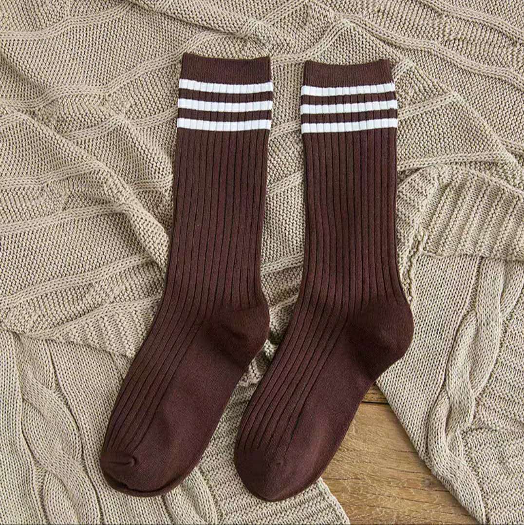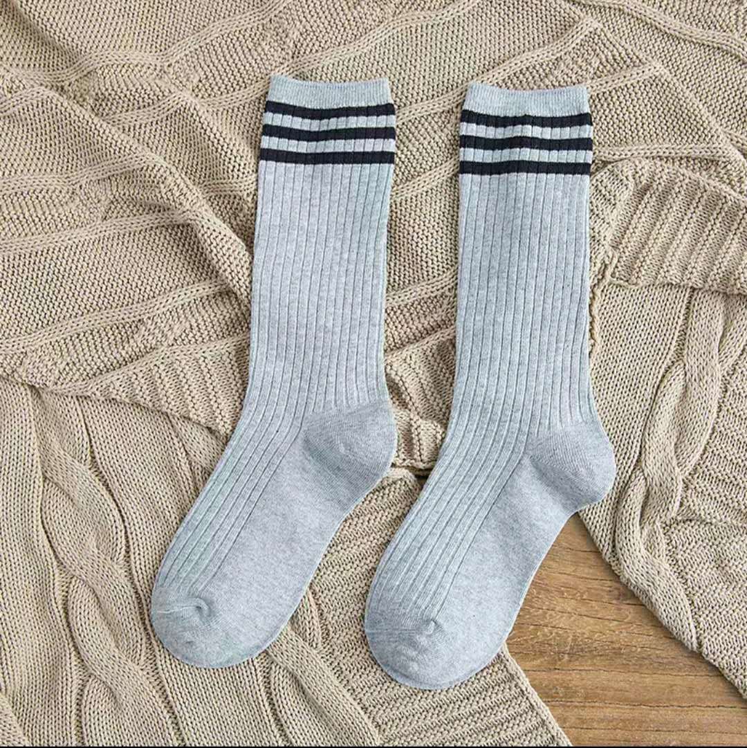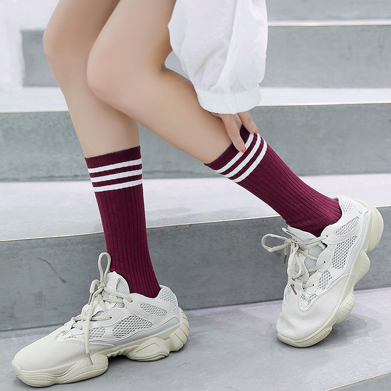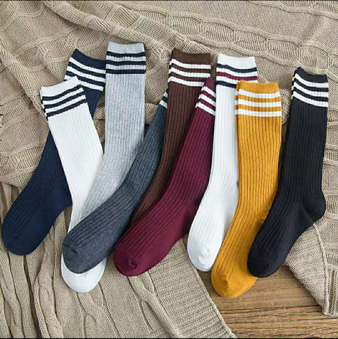 袜子女韩国ins潮三杠日系复古堆堆袜学院风不过膝透气中长筒棉袜