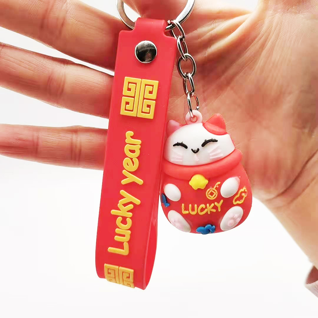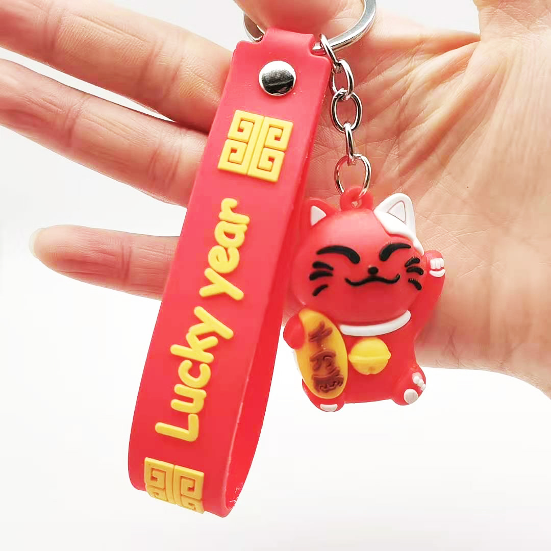 新款卡通招手猫钥匙扣包包挂件新年礼品招手进宝赠品促销现货批发