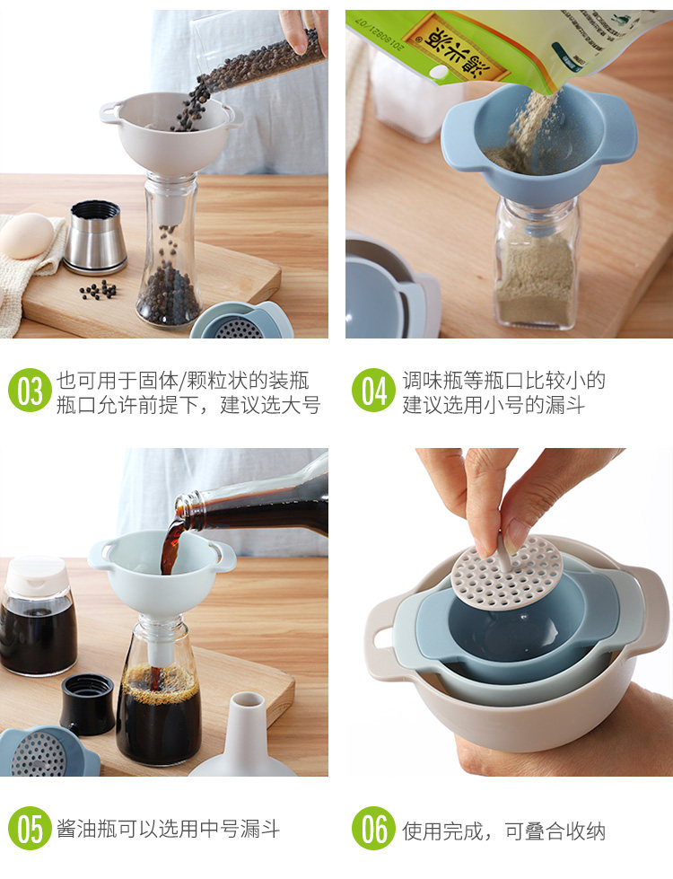 小工具 厨房漏斗组合 四合一套装PP塑料油漏带过滤网加米奶粉酒
