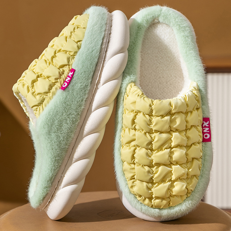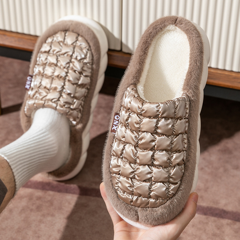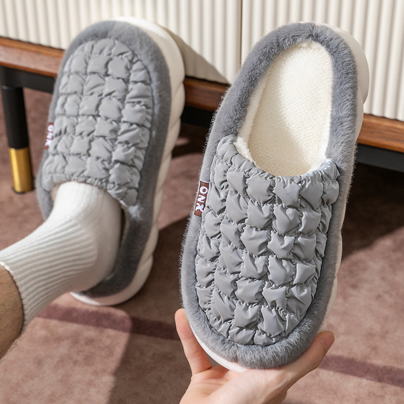 厚底棉拖鞋女秋冬季踩屎感室内家居家用保暖包跟情侣月子毛拖鞋男