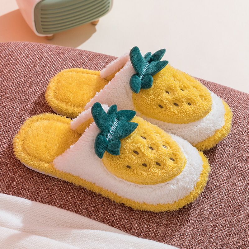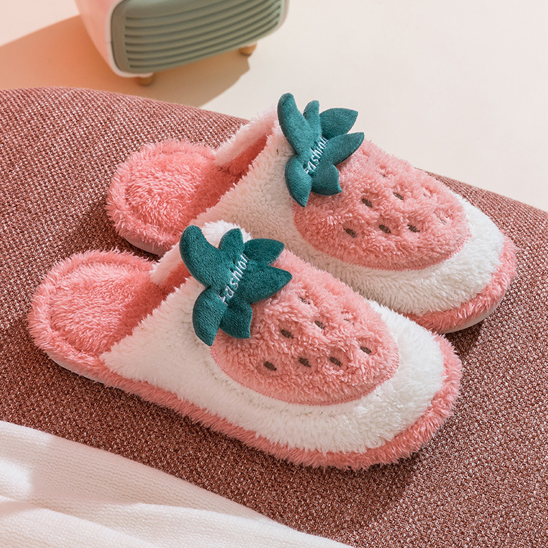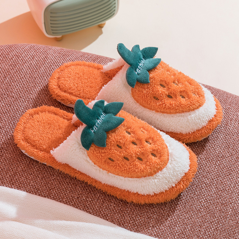 棉拖鞋情侣秋冬季家用室内毛绒厚底保暖居家水果毛毛拖防滑月子鞋
