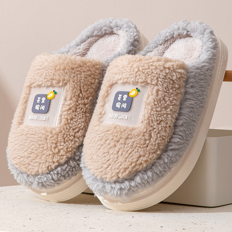 网红实心大底棉拖鞋女外穿秋冬季室外居家保暖情侣室内毛毛拖鞋男