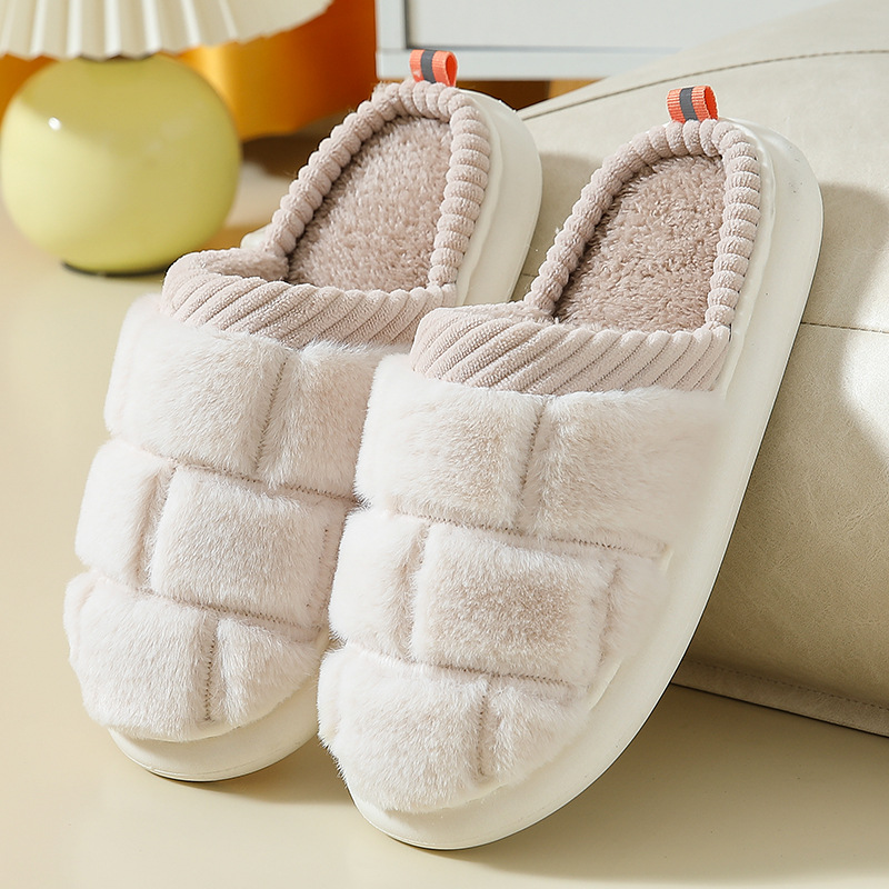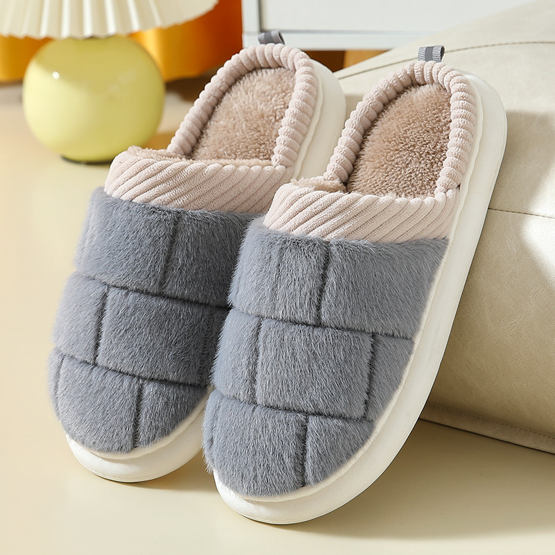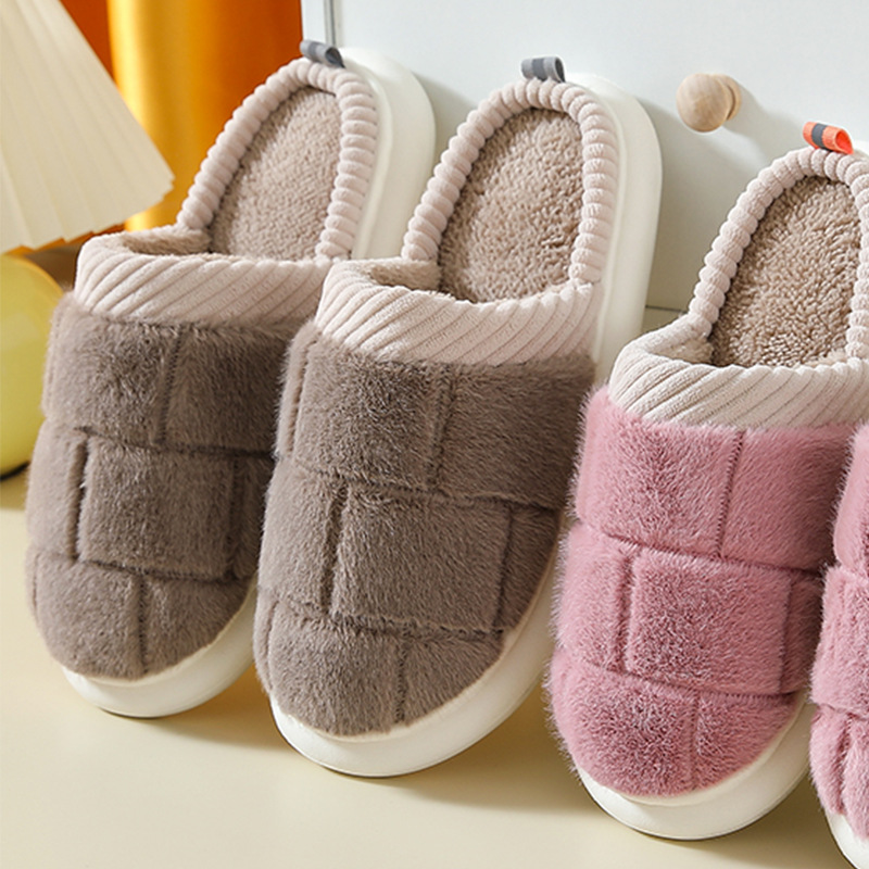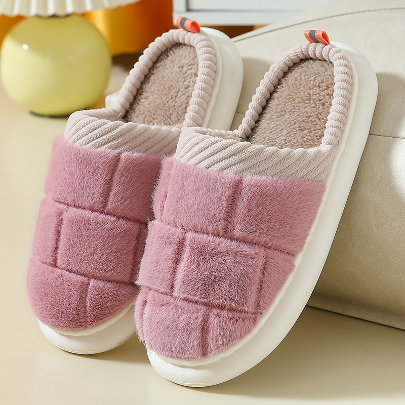 棉拖鞋女秋冬季新款室内家居厚底加绒毛毛保暖拖鞋男情侣外穿简约