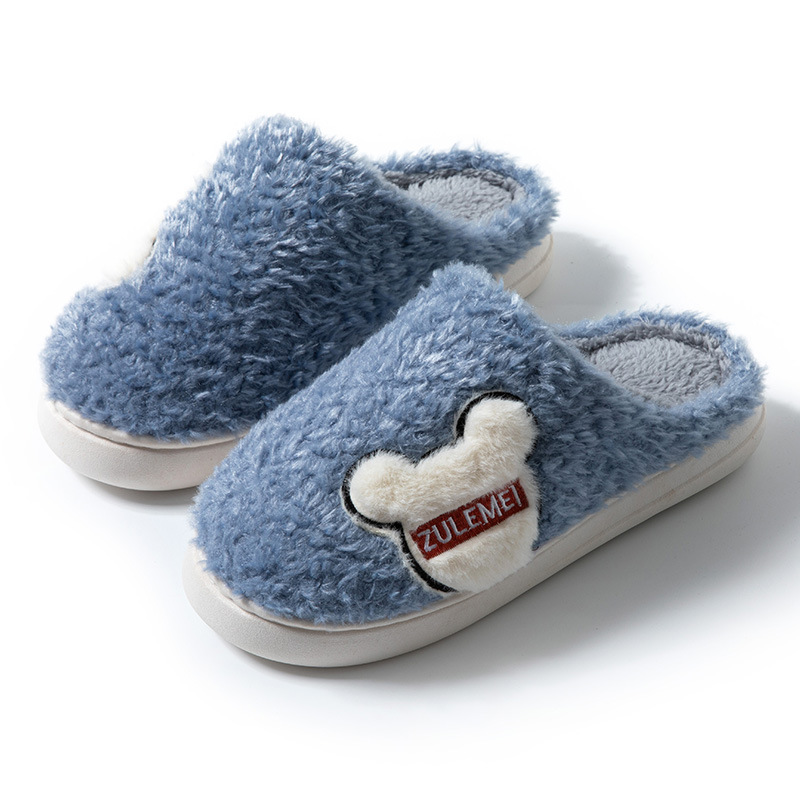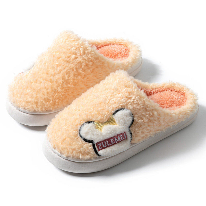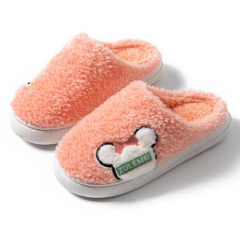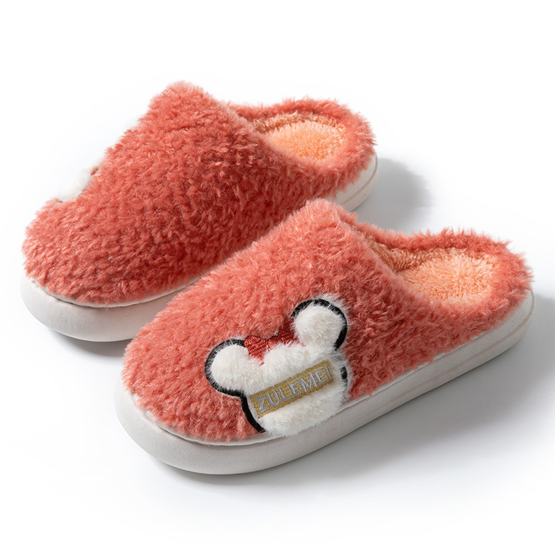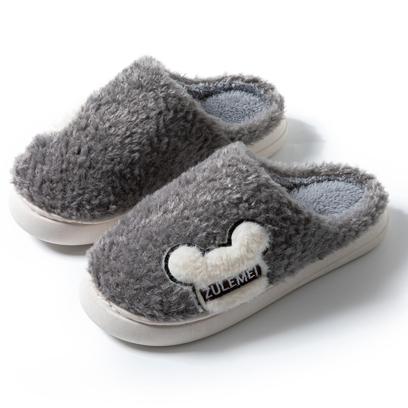 厚底棉拖鞋女秋冬季外穿居家室内卡通厚底包头毛毛绒小熊拖鞋情侣