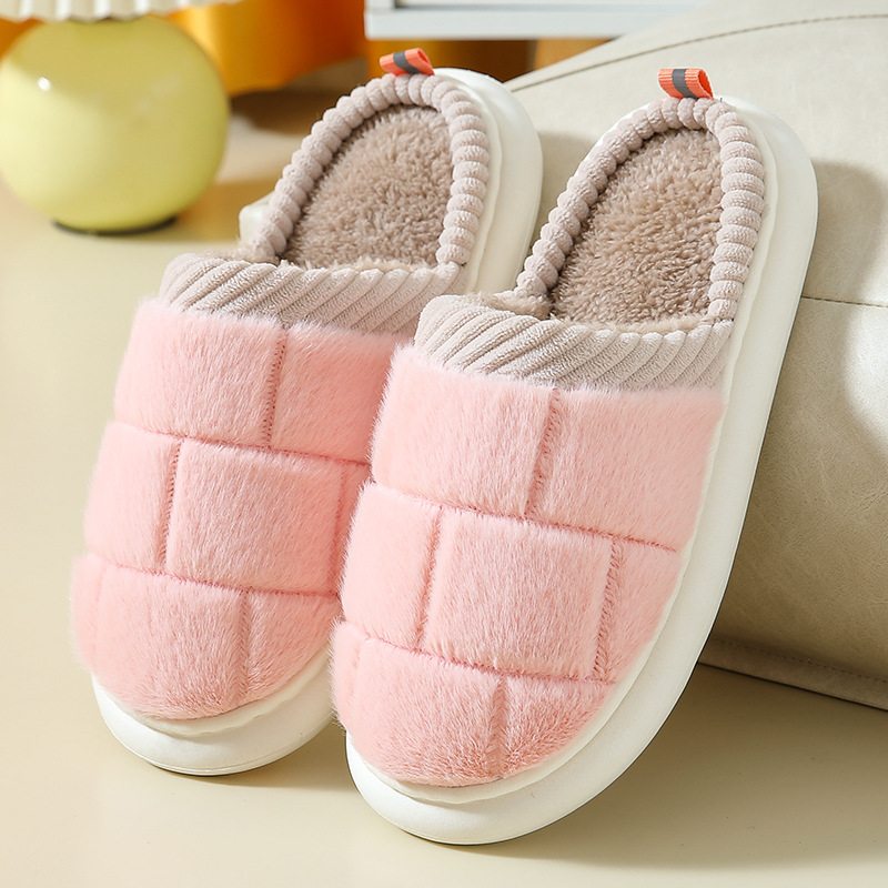 包头棉拖鞋女秋冬季家用保暖踩屎感厚底舒适情侣月子方块托鞋男冬