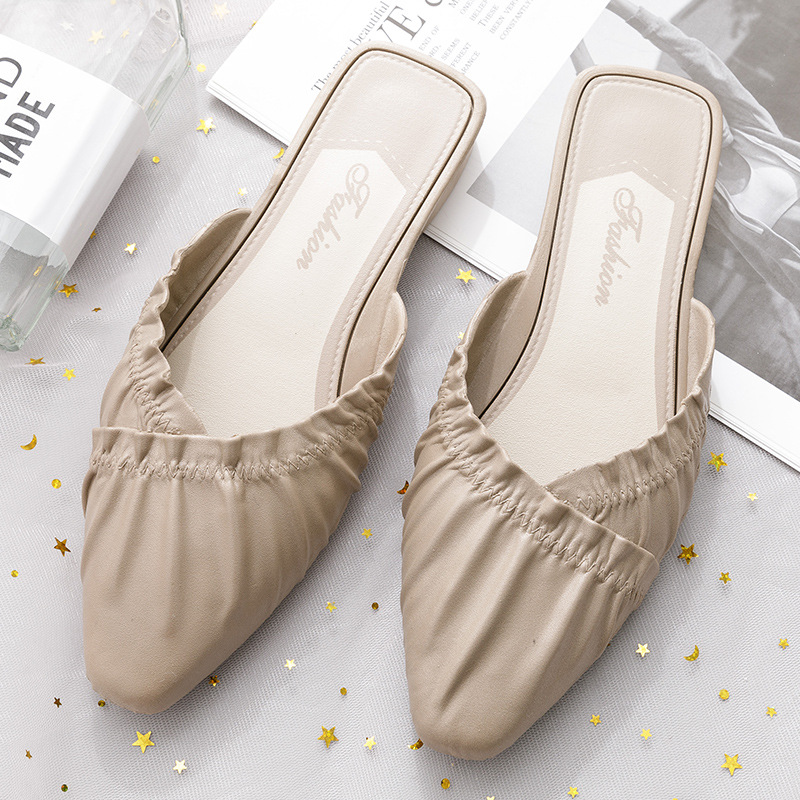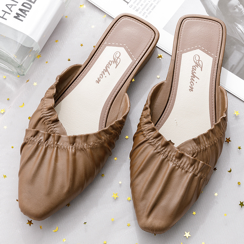 春夏季新款包头半凉拖鞋女外穿尖头平底网红时尚百搭懒人拖鞋男夏