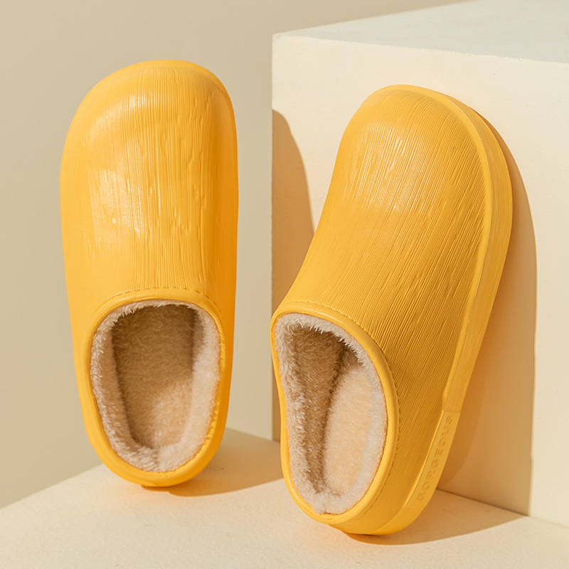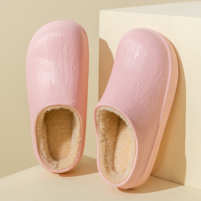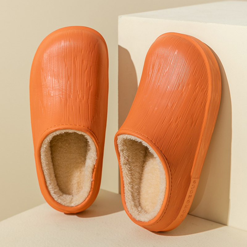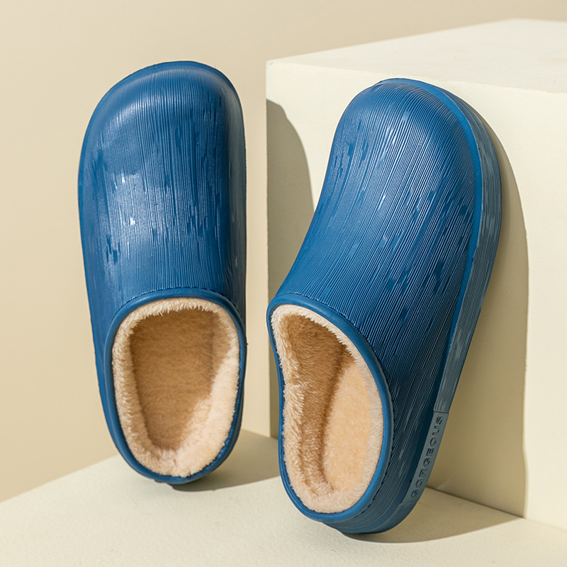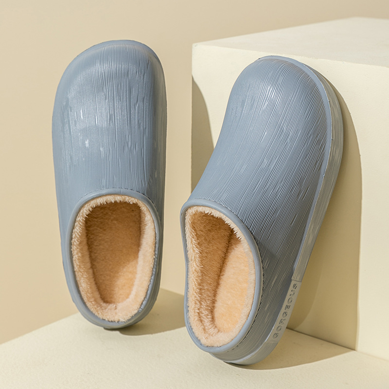 棉拖鞋女防水秋冬季包跟保暖家居情侣加绒厚底毛毛棉鞋男