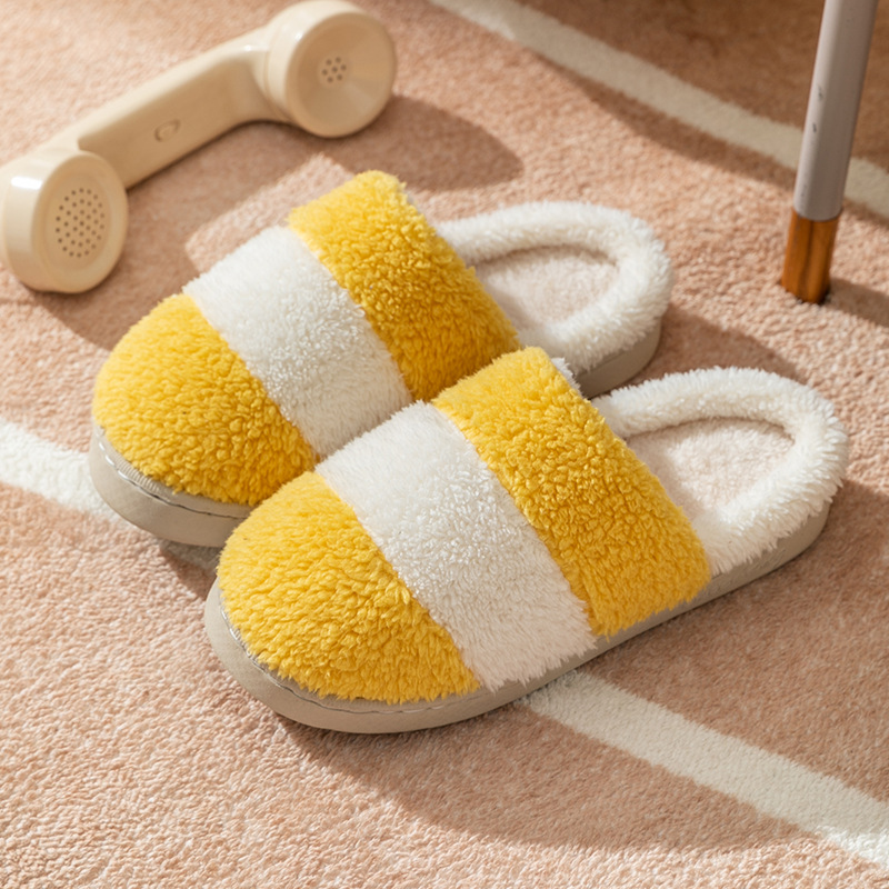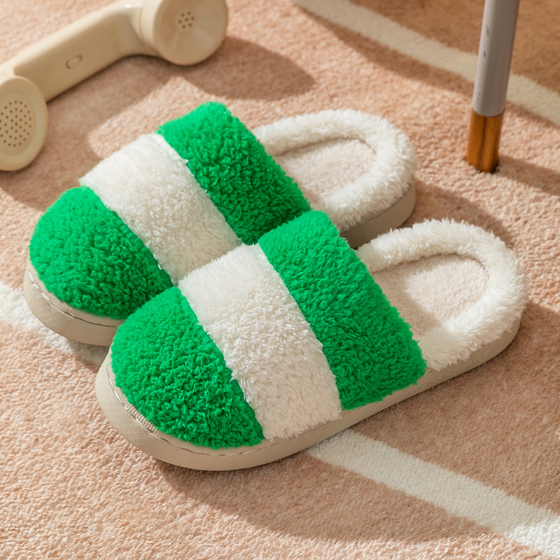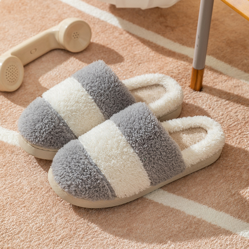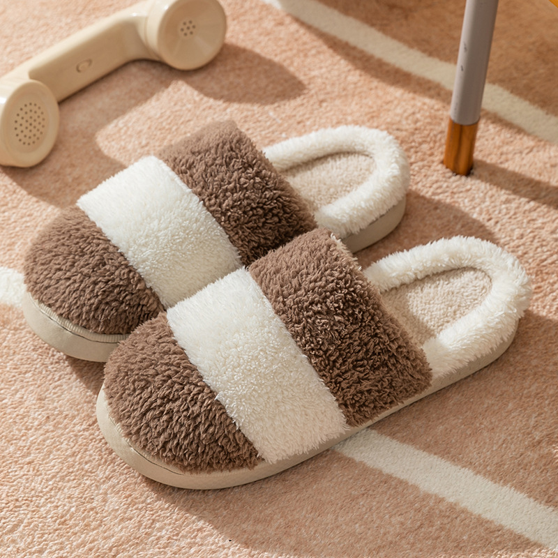 棉拖鞋女士秋冬季拼色保暖防滑室内家居加厚底情侣家用毛绒托鞋男