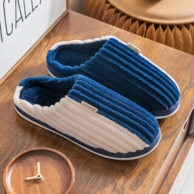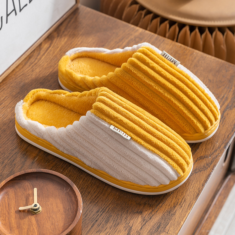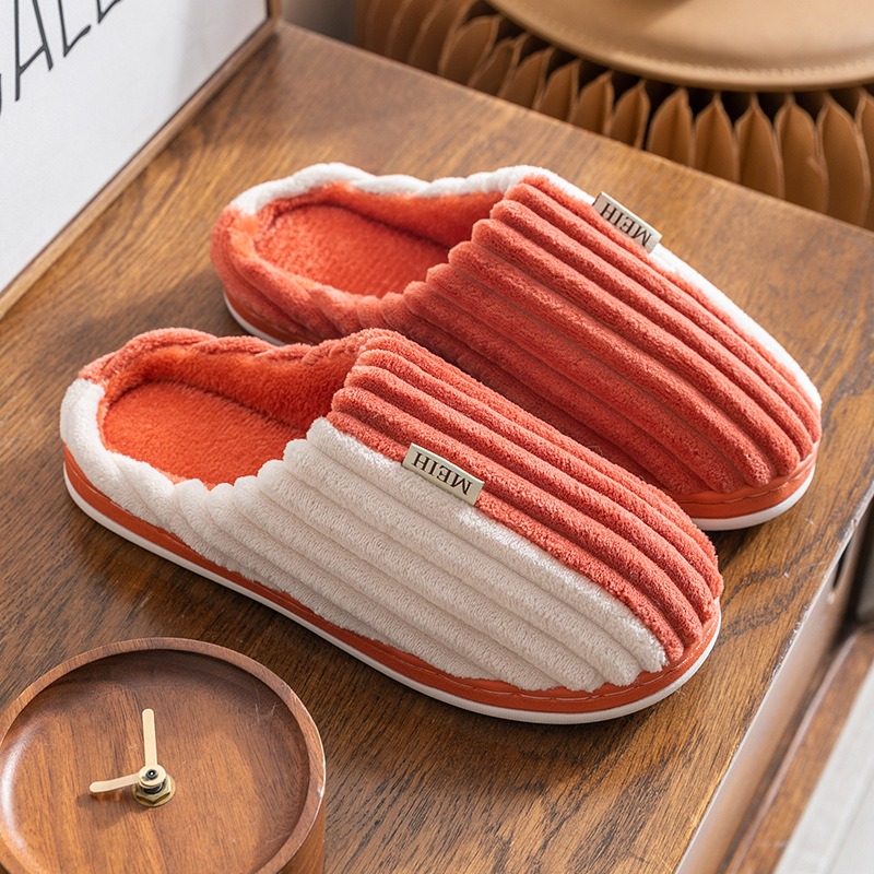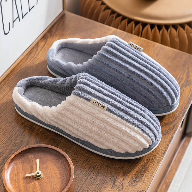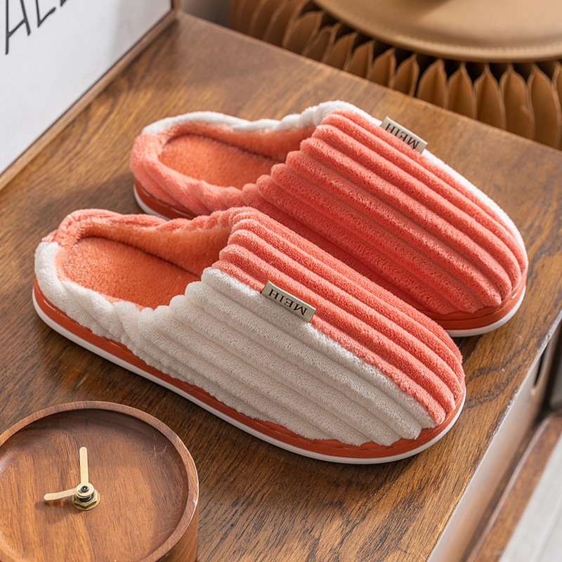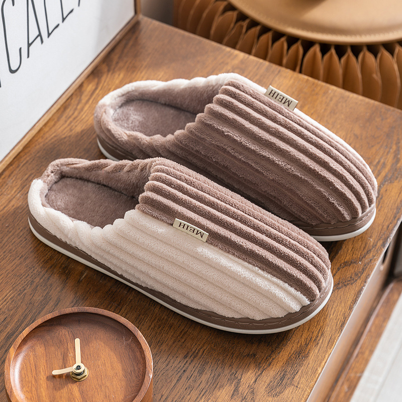 简约秋冬季毛绒棉拖鞋女居家厚底防滑月子鞋室内外家用情侣托鞋男