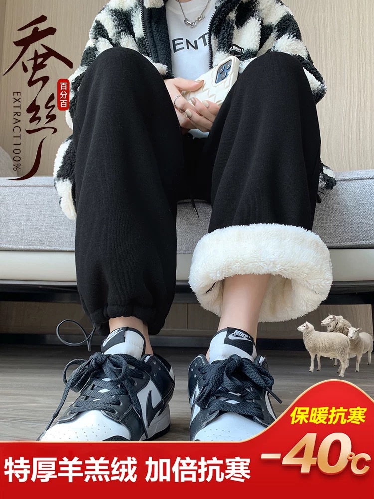 秋冬加厚羊羔绒运动裤女抽绳束脚棉裤高腰外穿休闲宽松显瘦卫裤潮