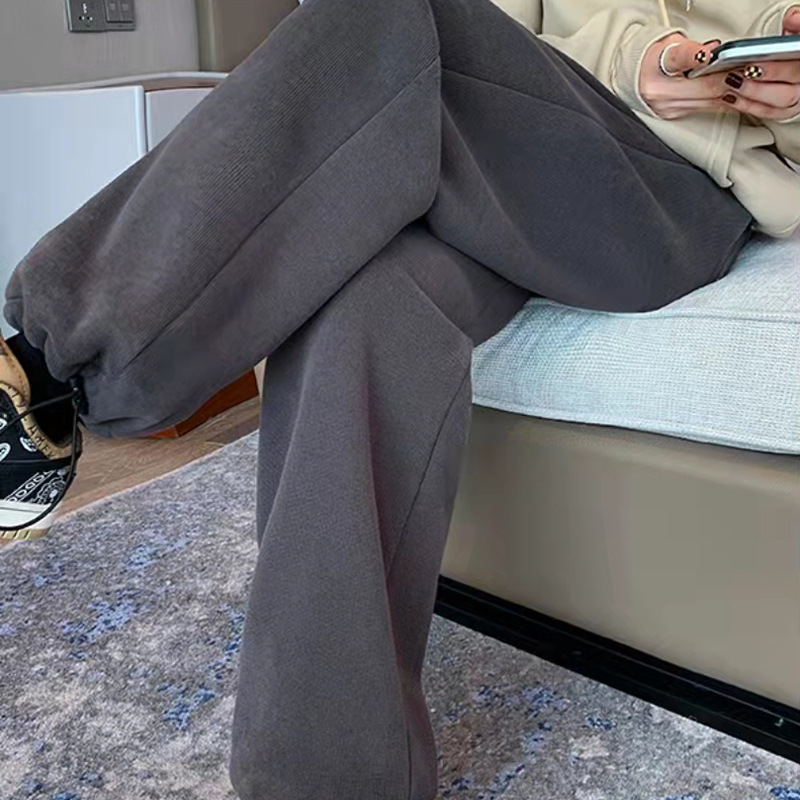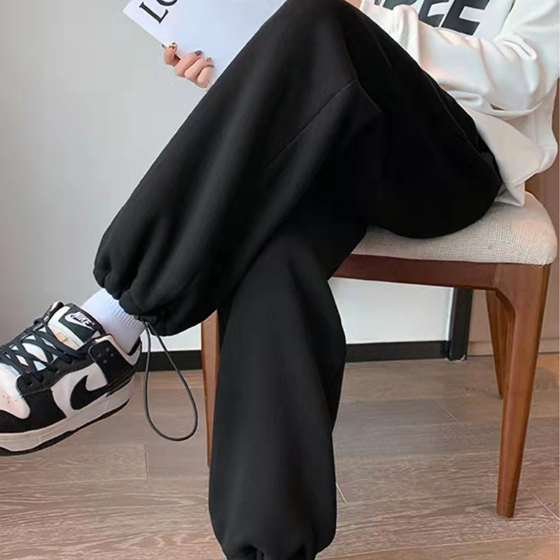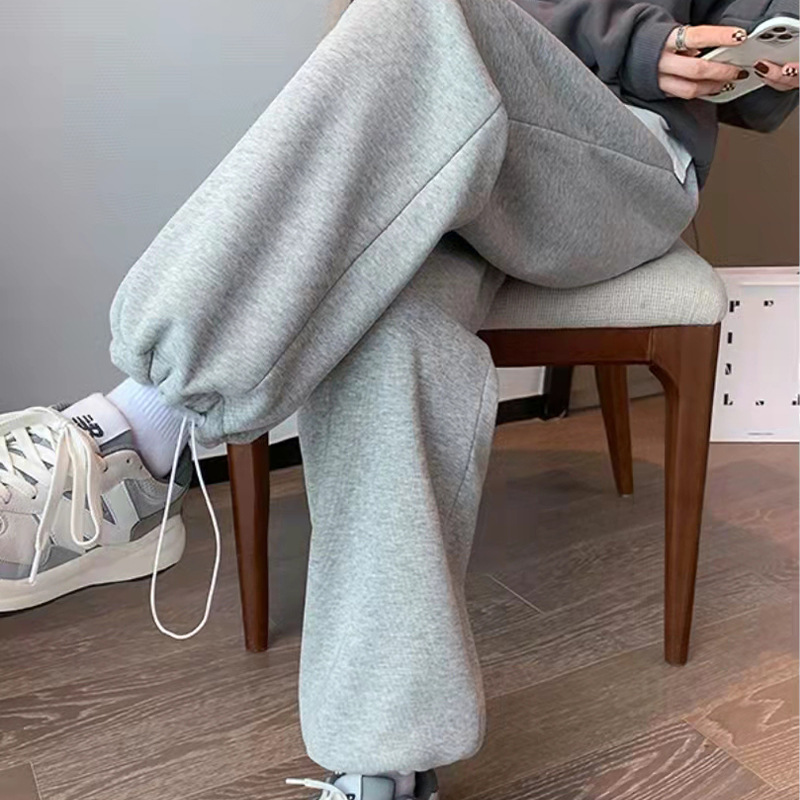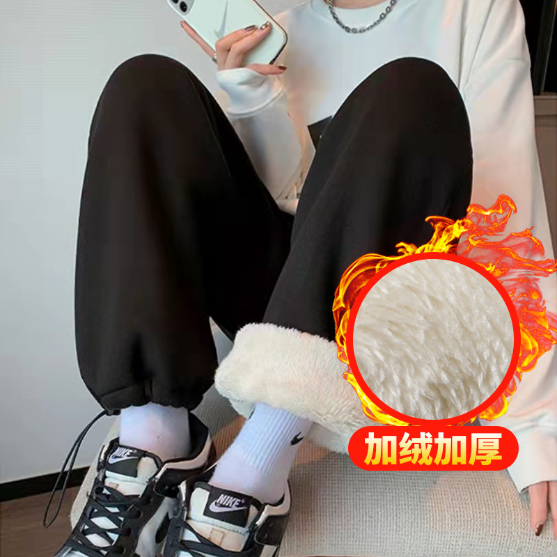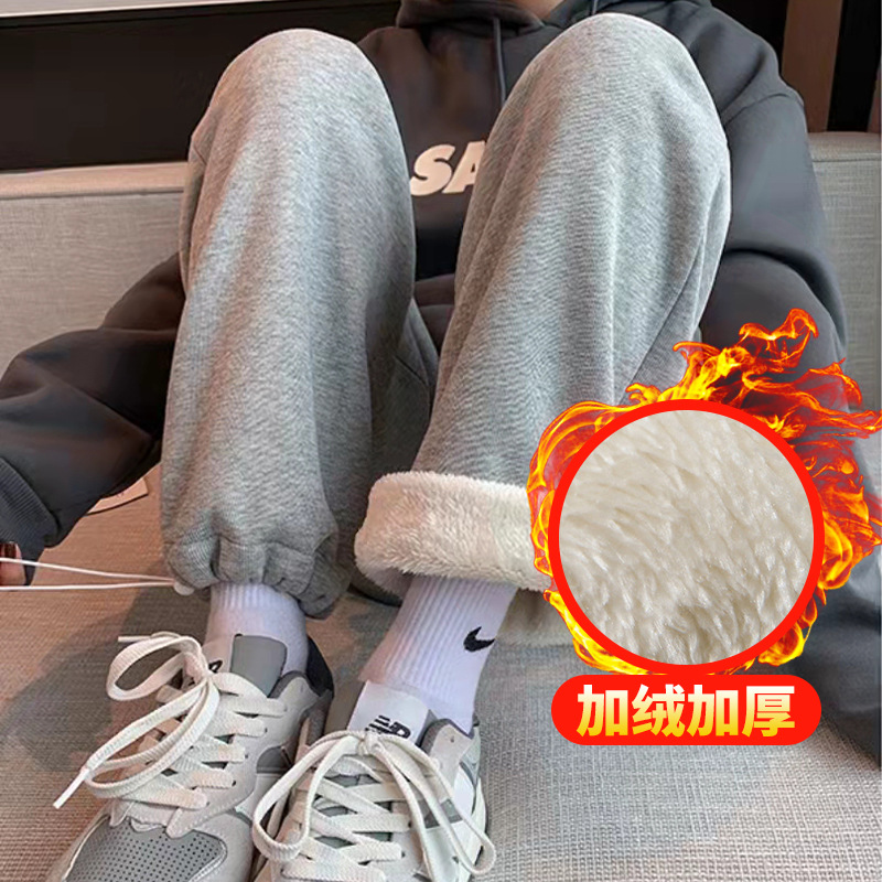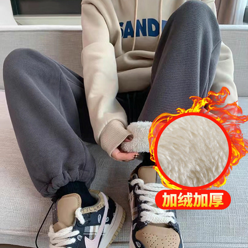 加绒运动裤女外穿宽松束脚秋冬季2022新款羊羔绒休闲灰色加厚卫裤