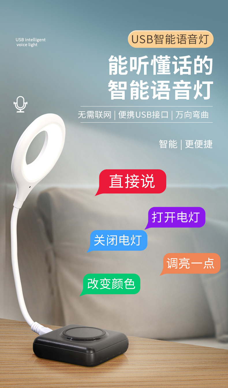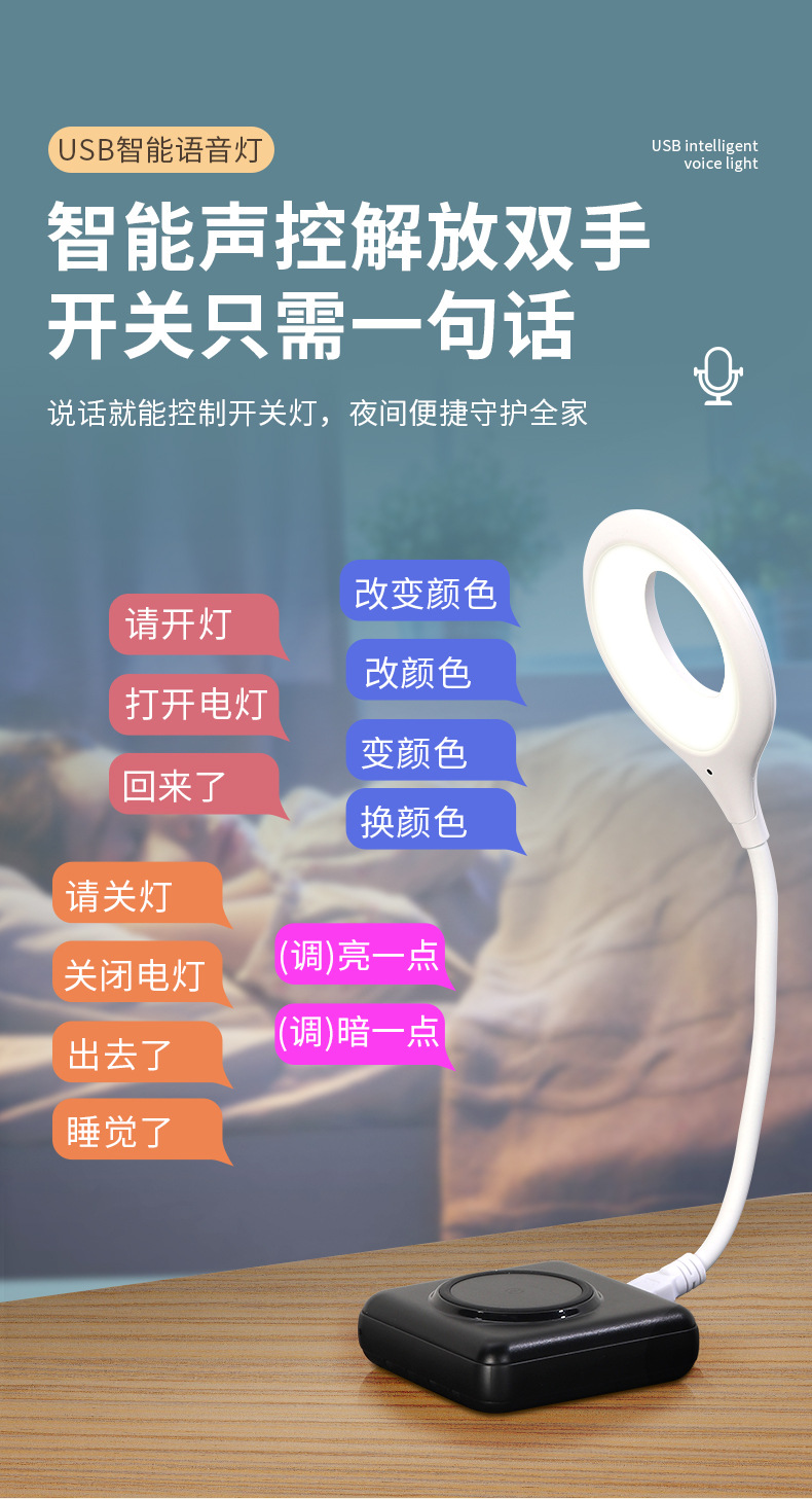 现货抖音同款语音小夜灯USB语音夜灯人工智能声控夜灯LED夜灯礼品