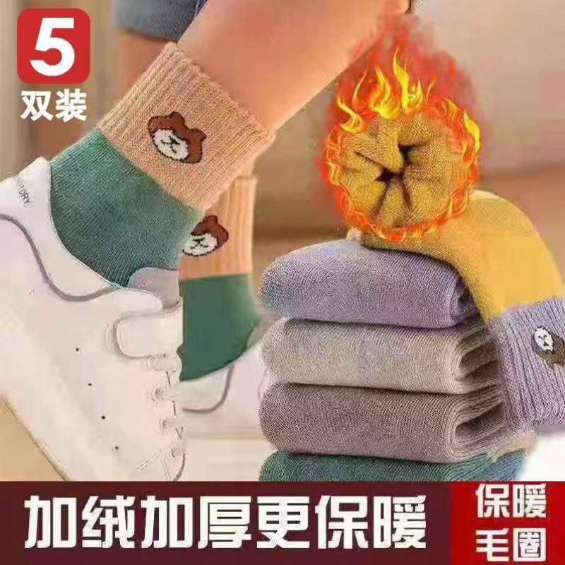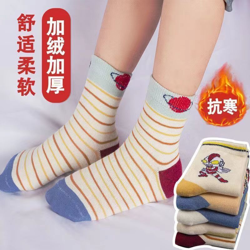 冬季加绒加厚毛圈袜儿童保暖袜子男童女童宝宝冬季加绒拉毛厚袜子