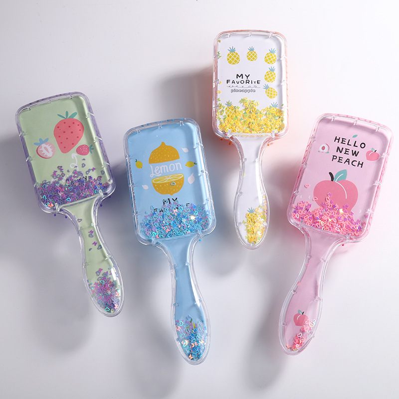 日韩少女气囊梳流沙亮片ABS美发梳子按摩梳学生创意简约水果梳