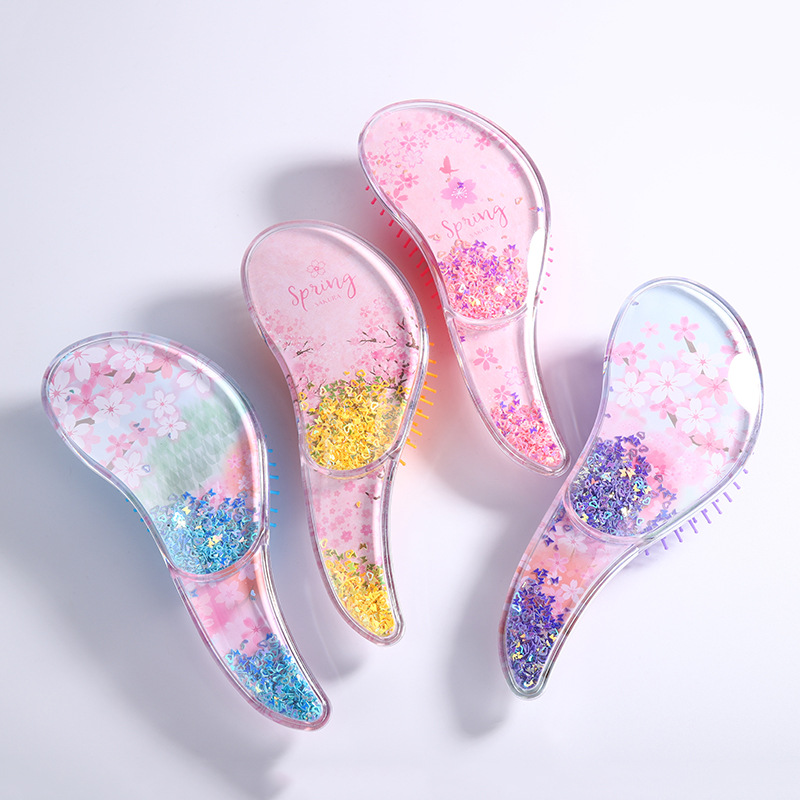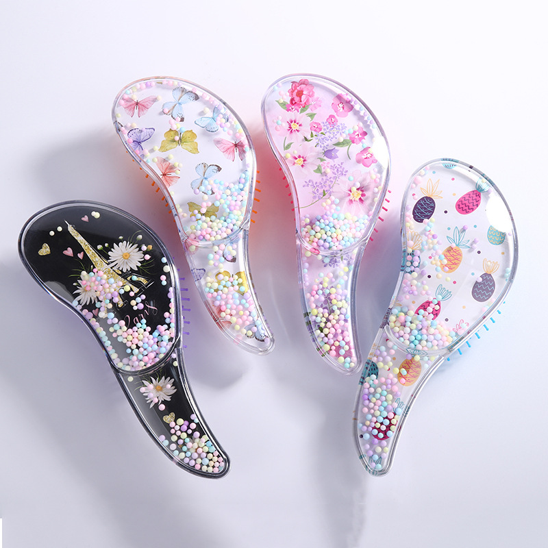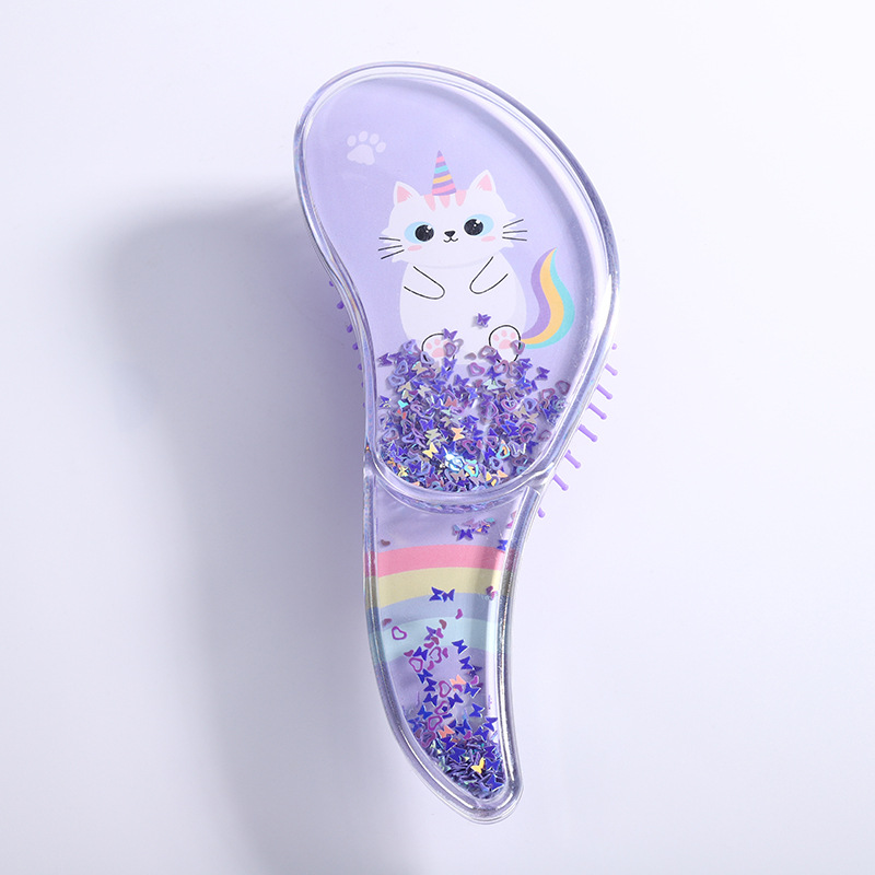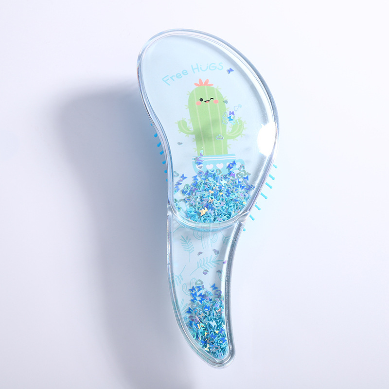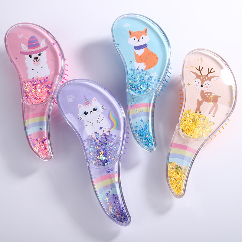 卡通儿童tt梳子可爱塑料美发梳护发顺发家用流沙亮片气垫梳批发