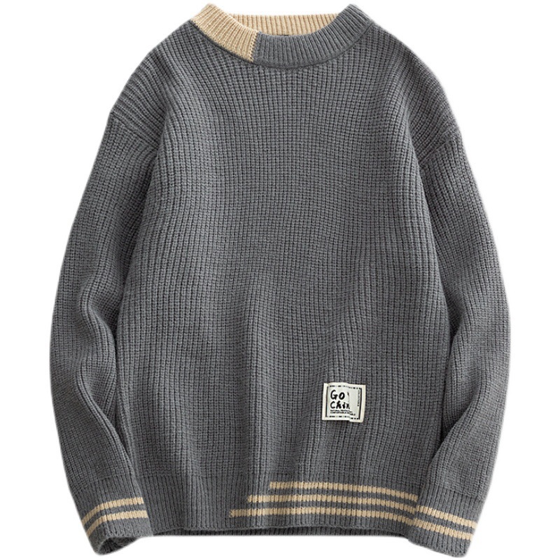 2022秋冬季新款毛衣男ins日系潮流加厚打底衫男士宽松圆领针织衫