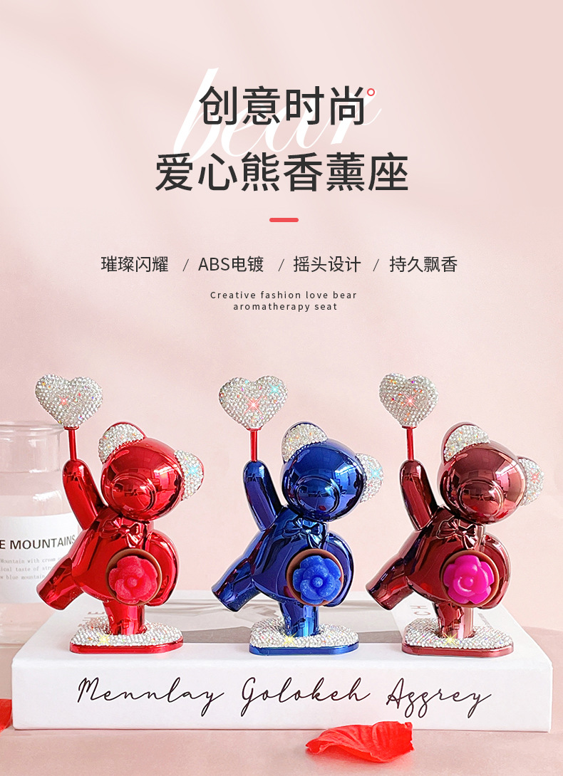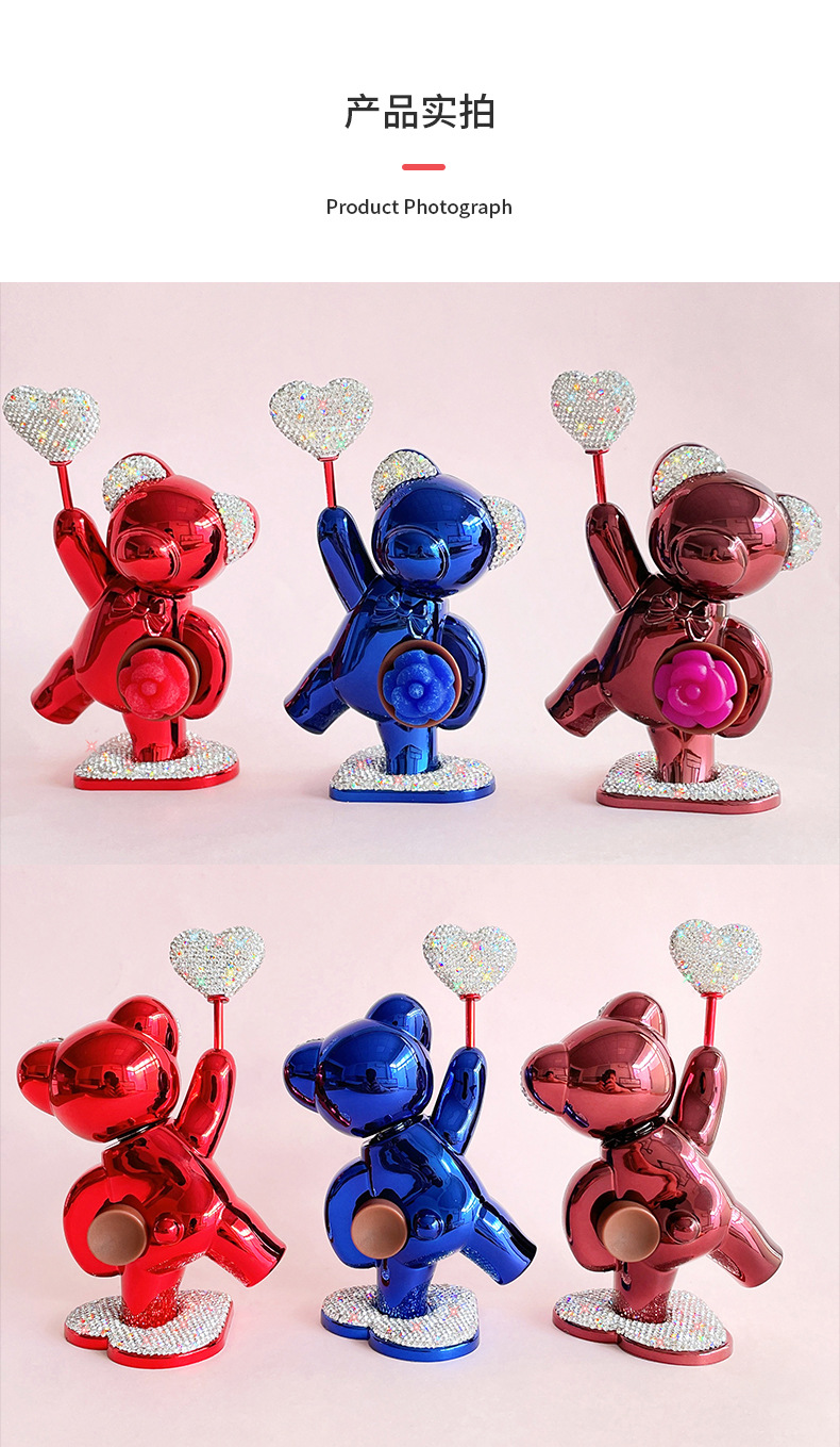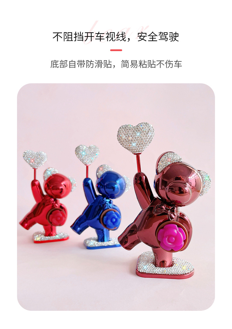 汽车用品批发车载饰品车载摆件可爱镶钻爱心鲜花小熊汽车香薰摆件