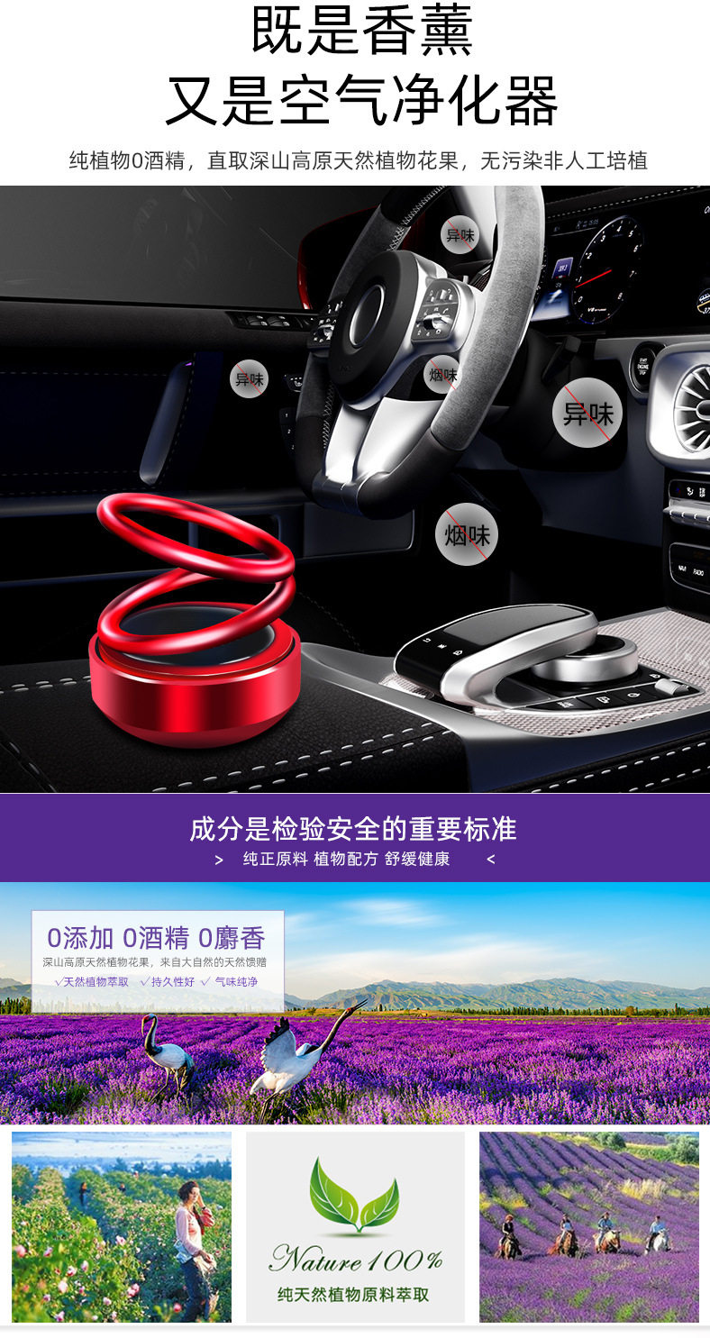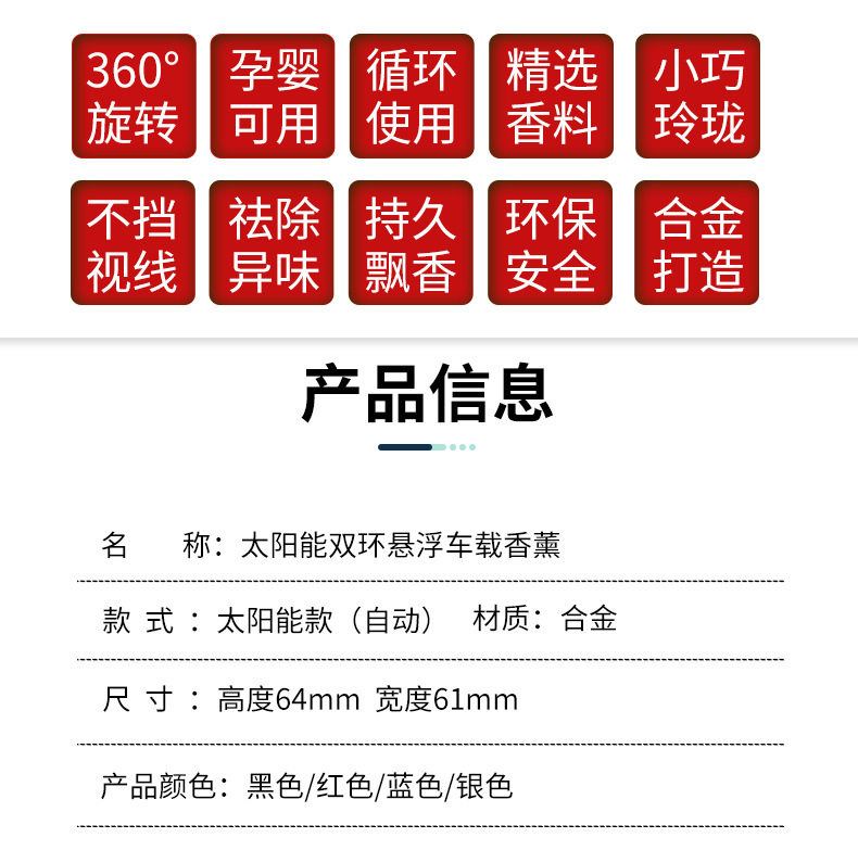 太阳能双环悬浮车载香水厂家批发创意车载香薰车内汽车香水摆件