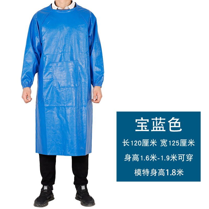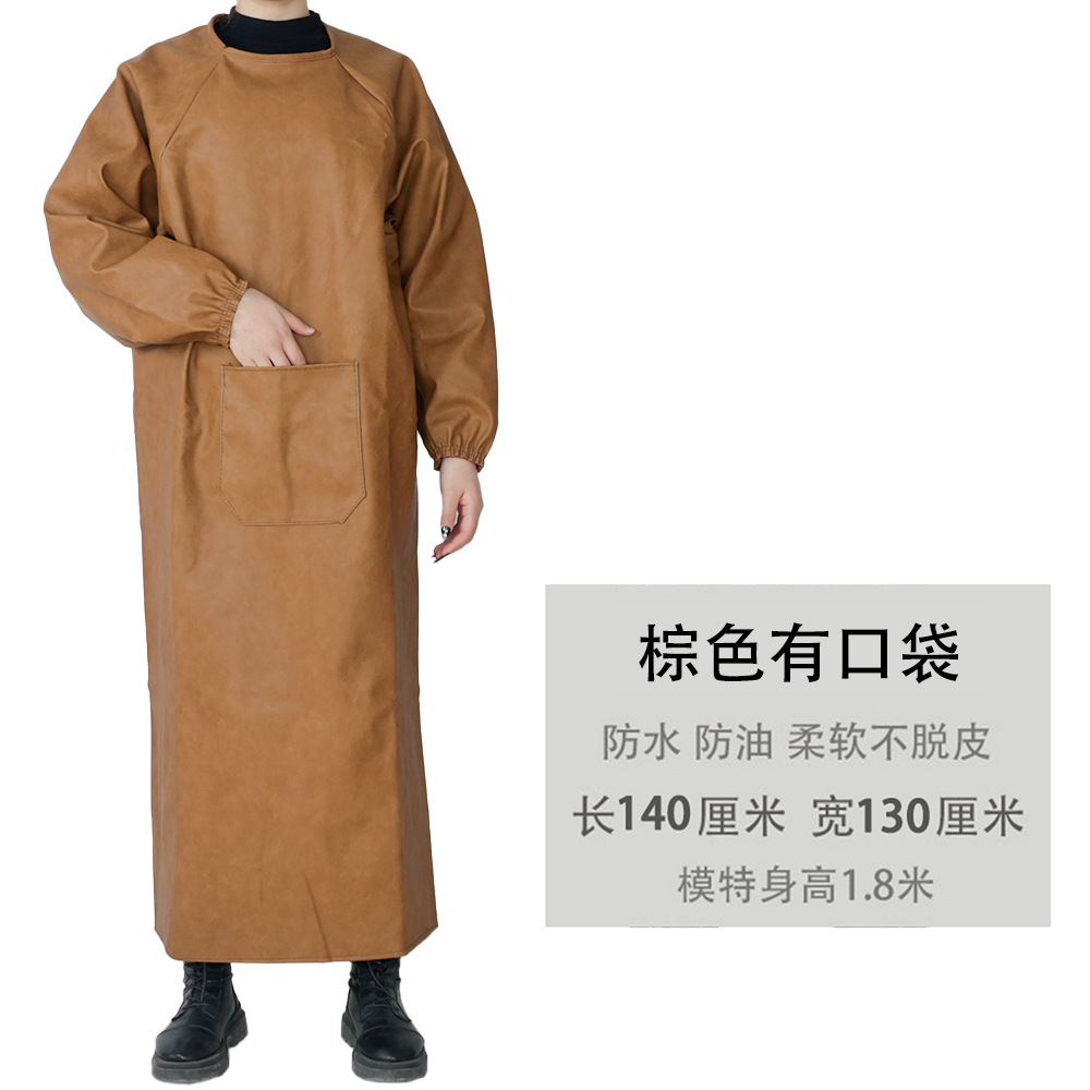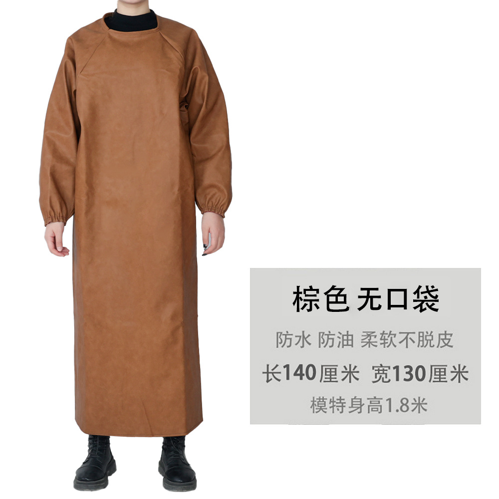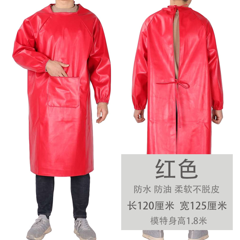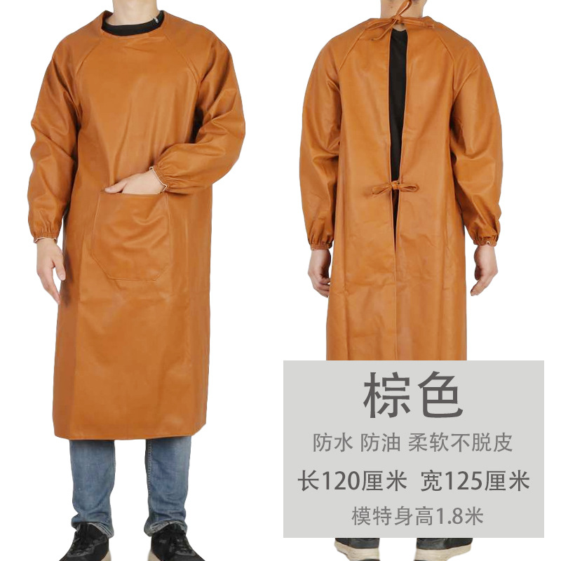 皮革防水围裙防油耐弱酸碱男女反穿衣倒背衣长袖加厚工作服PU罩衣
